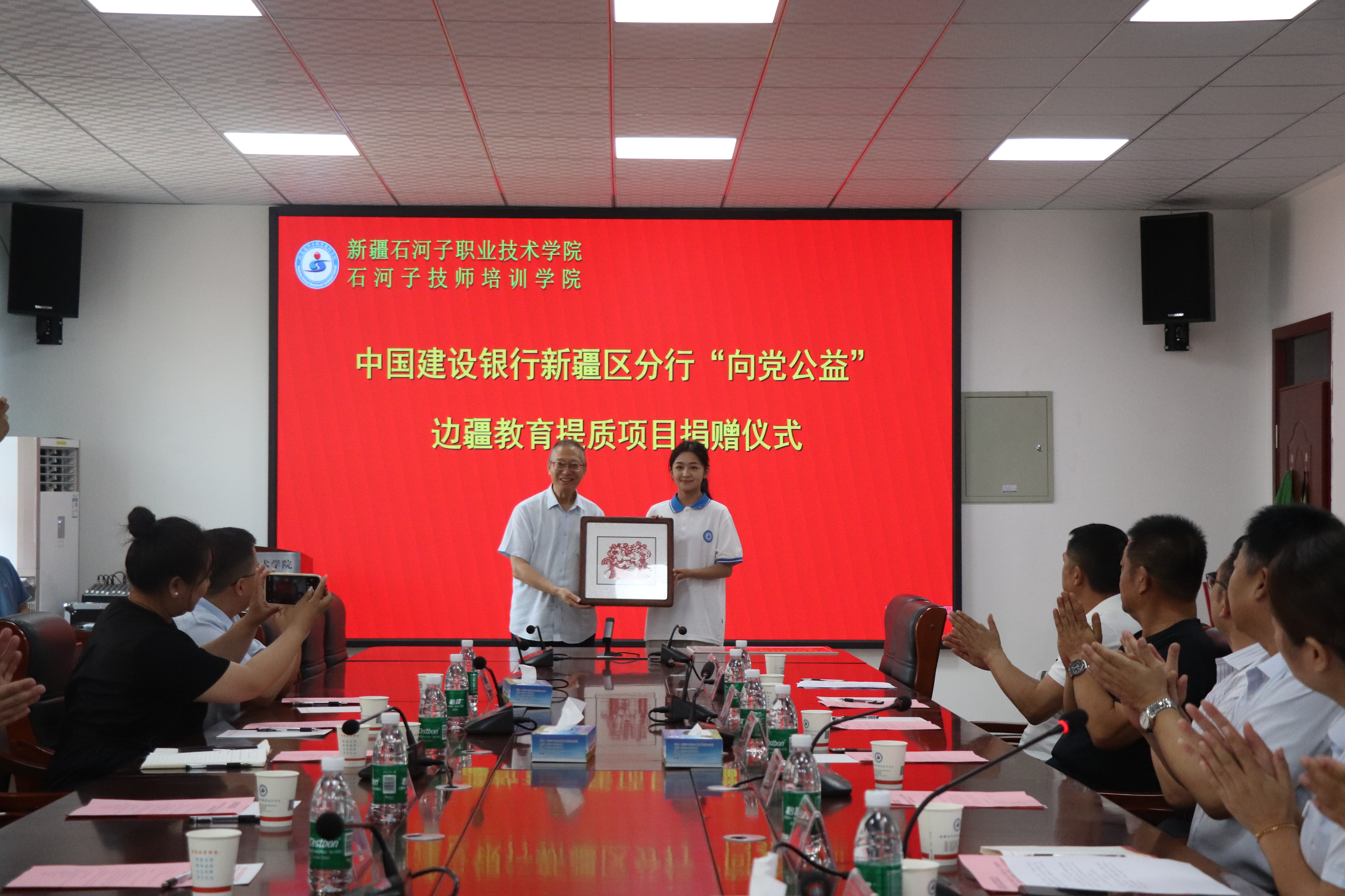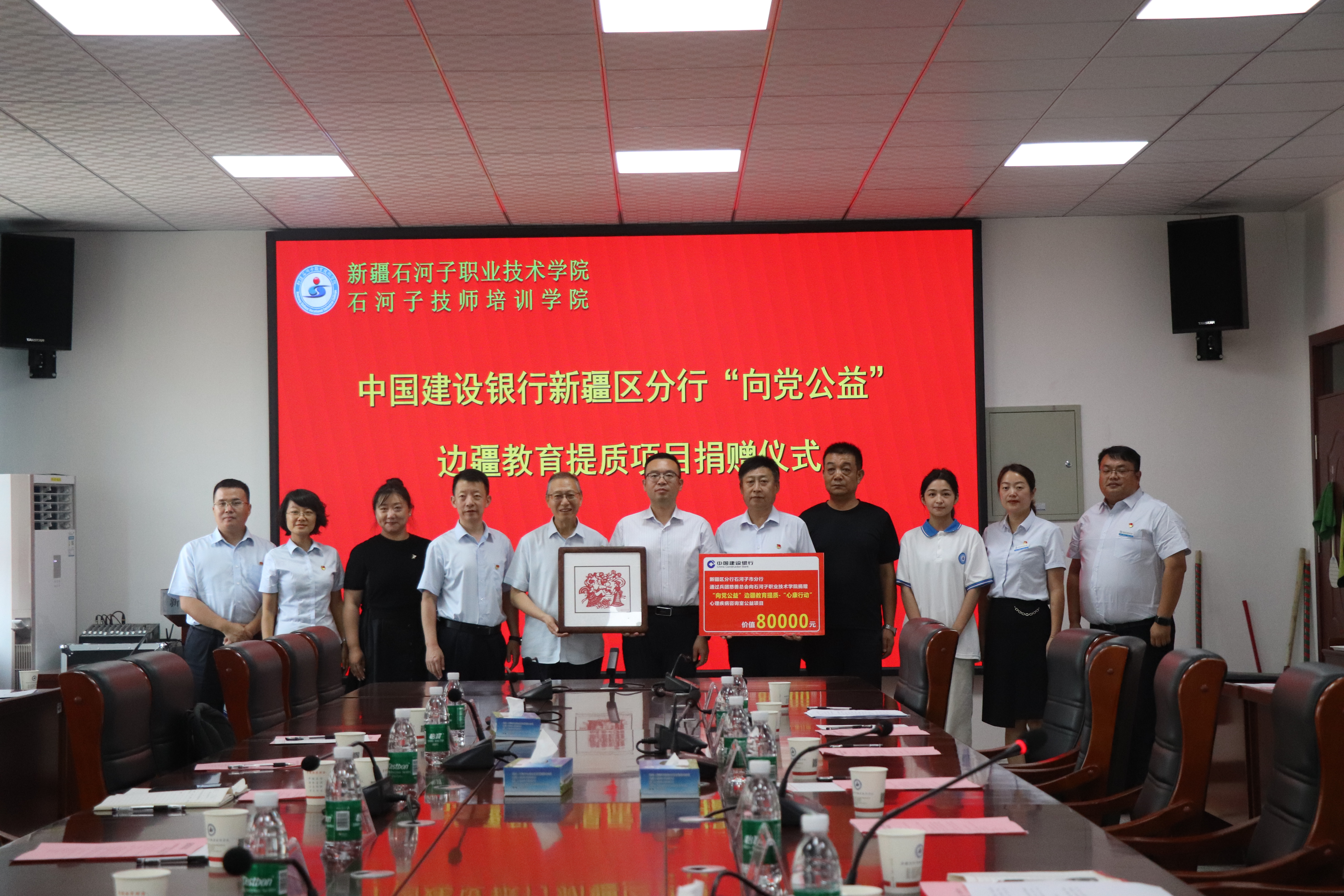 (杨慧 报道)2025年6月26日,中国建设银行新疆区分行“向党公益”边疆教育提质项目捐赠仪式在新疆石河子职业技术学院在厚德楼三楼会议室举行。八师教育局党委书记、局长黄博,石河子监狱副监狱长肖建平,兵团慈善总会副秘书长孔令媛,建行新疆区分行公共关系与企业文化部总经理、部长李向党,建行石河子市分行党委书记、行长马翱,学校党委副书记、院长林炯,党委委员、副院长马彩梅等多方领导嘉宾齐聚一堂,共同见证这场爱心助力边疆职业教育的暖心行动。仪式由学校副院长马彩梅主持。