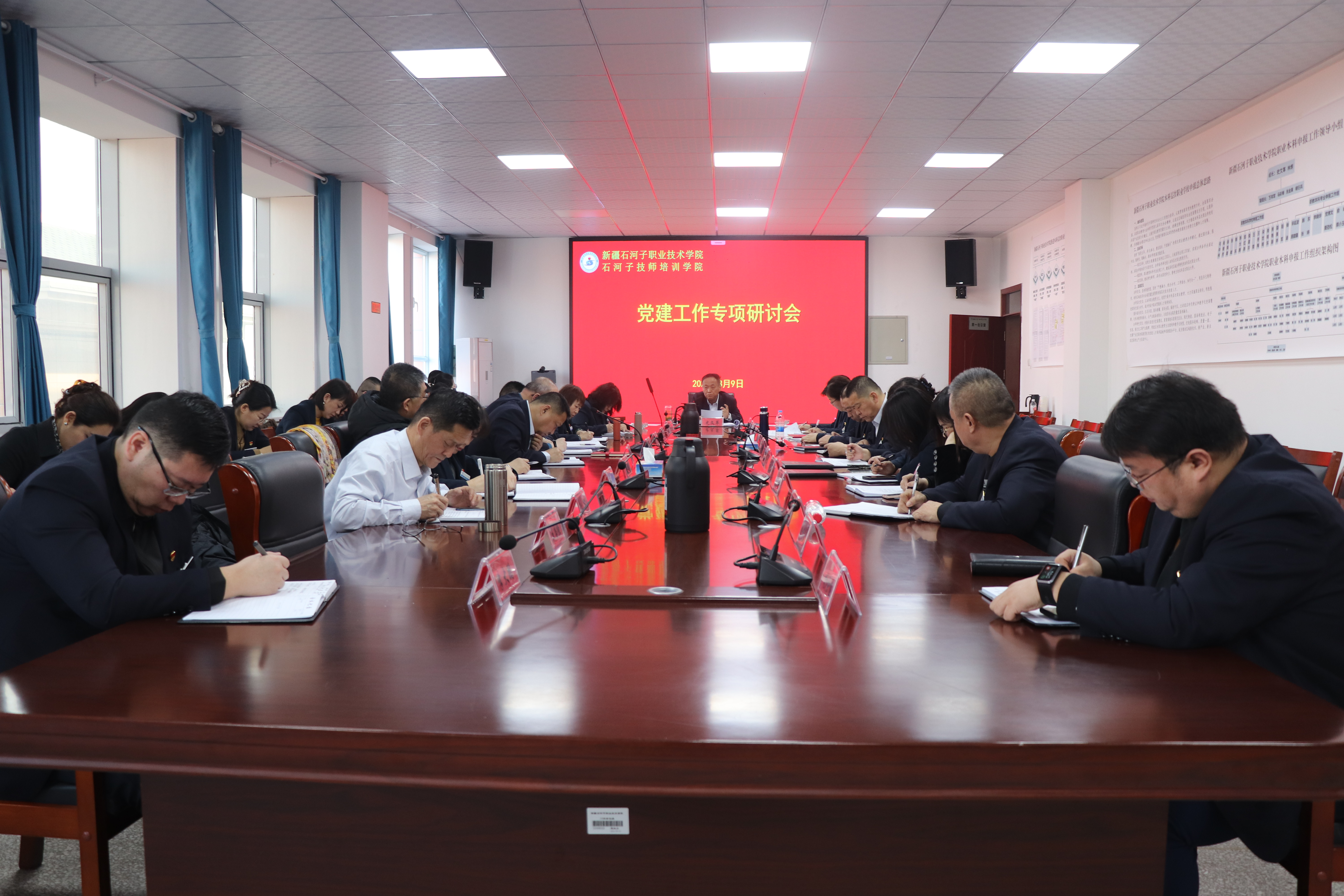 (杨慧 报道)2025年3月9日上午,新疆石河子职业技术学院在厚德楼三楼会议室召开党建工作专项研讨会,学校党委书记史文革主持会议,学校党委委员、各部门负责人及各二级学院书记、院长参加会议。