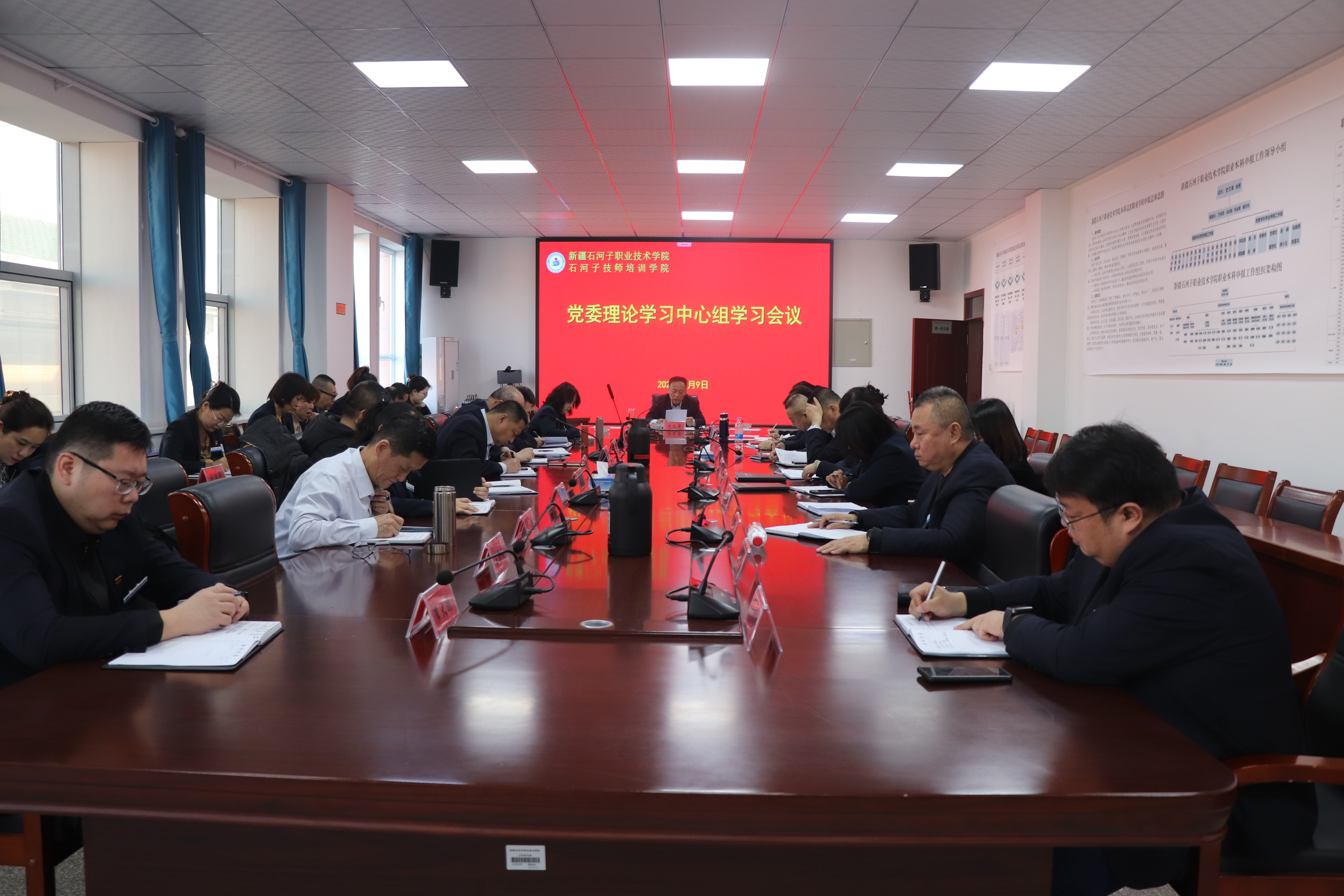 (杨慧 报道)2025年3月9日上午,新疆石河子职业技术学院党委在厚德楼三楼会议室举行第3次理论学习中心组集体学习会议,学校党委书记史文革主持会议,学校党委委员、各部门负责人及各二级学院书记、院长参加会议。