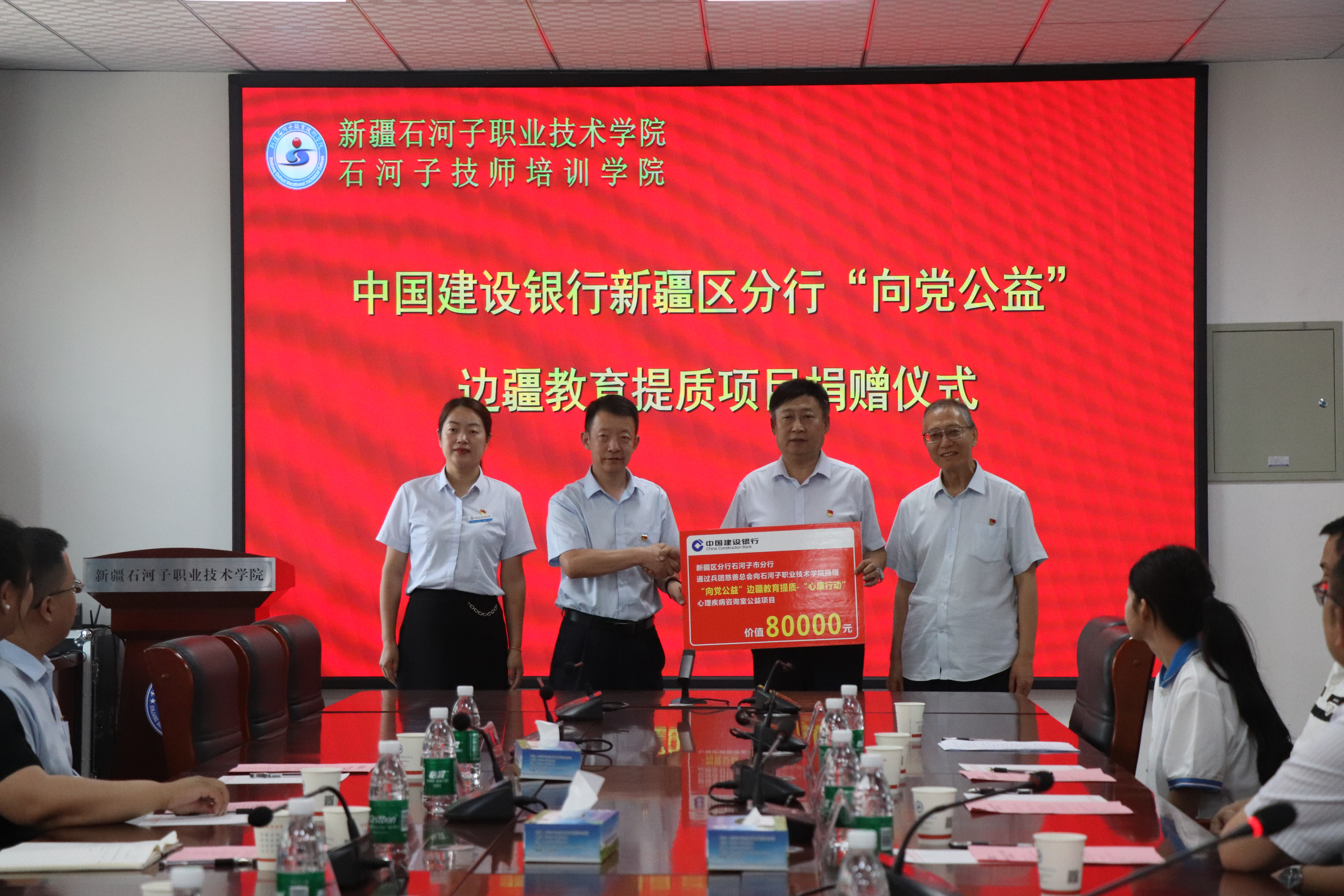 (杨慧 报道)2025年6月26日,中国建设银行新疆区分行“向党公益”边疆教育提质项目捐赠仪式在新疆石河子职业技术学院在厚德楼三楼会议室举行。八师教育局党委书记、局长黄博,石河子监狱副监狱长肖建平,兵团慈善总会副秘书长孔令媛,建行新疆区分行公共关系与企业文化部总经理、部长李向党,建行石河子市分行党委书记、行长马翱,学校党委副书记、院长林炯,党委委员、副院长马彩梅等多方领导嘉宾齐聚一堂,共同见证这场爱心助力边疆职业教育的暖心行动。仪式由学校副院长马彩梅主持。