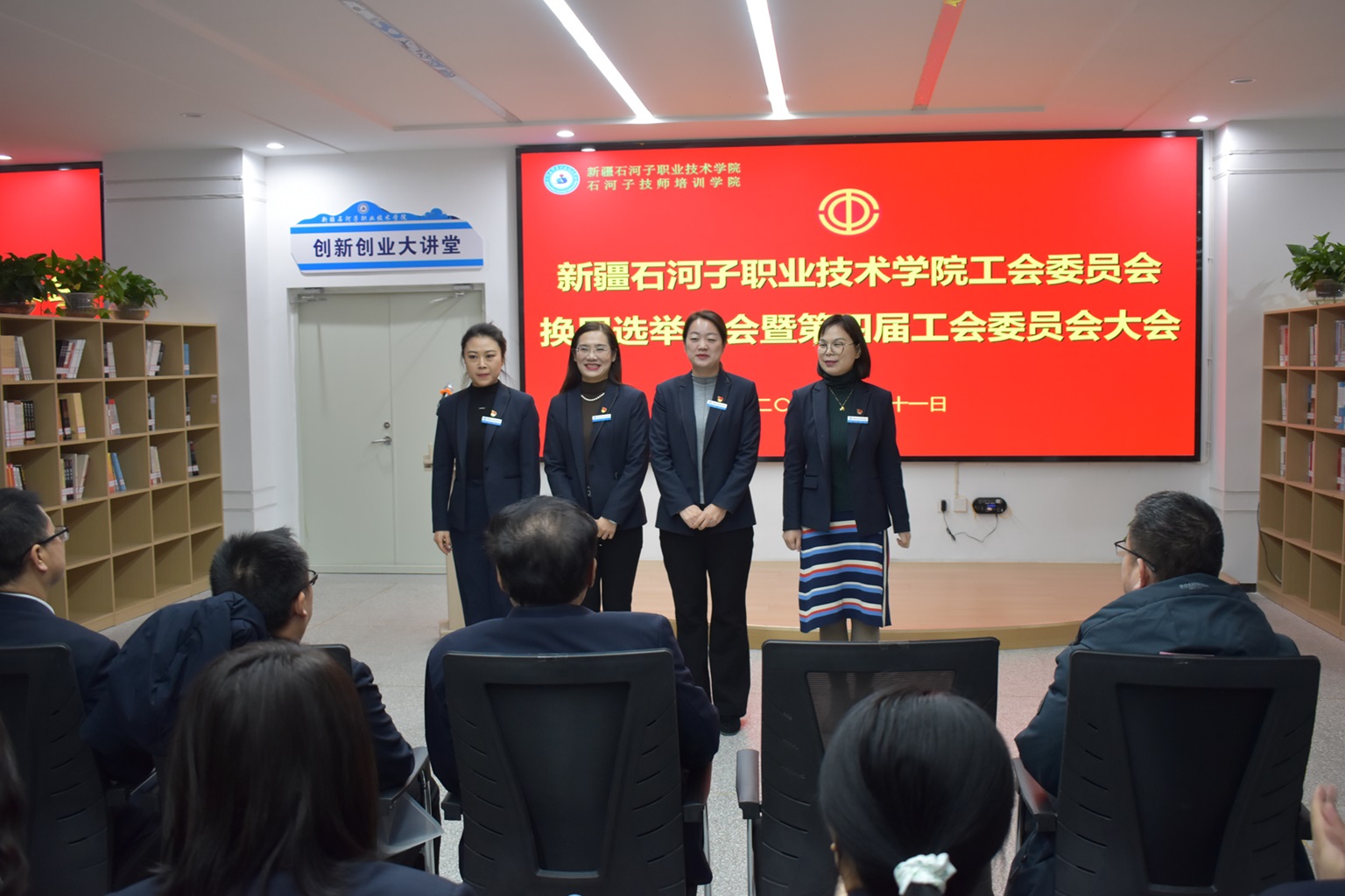 (王需 徐千然 报道)2024年1月11日,新疆石河子职业技术学院工会委员会换届选举大会暨第四届工会委员会大会在学院创新创业中心顺利召开。学院党委书记史文革,纪委书记万祥军,副院长马彩梅、张金果、褚衍兵出席会议。工会委员会全体教职工代表参会。