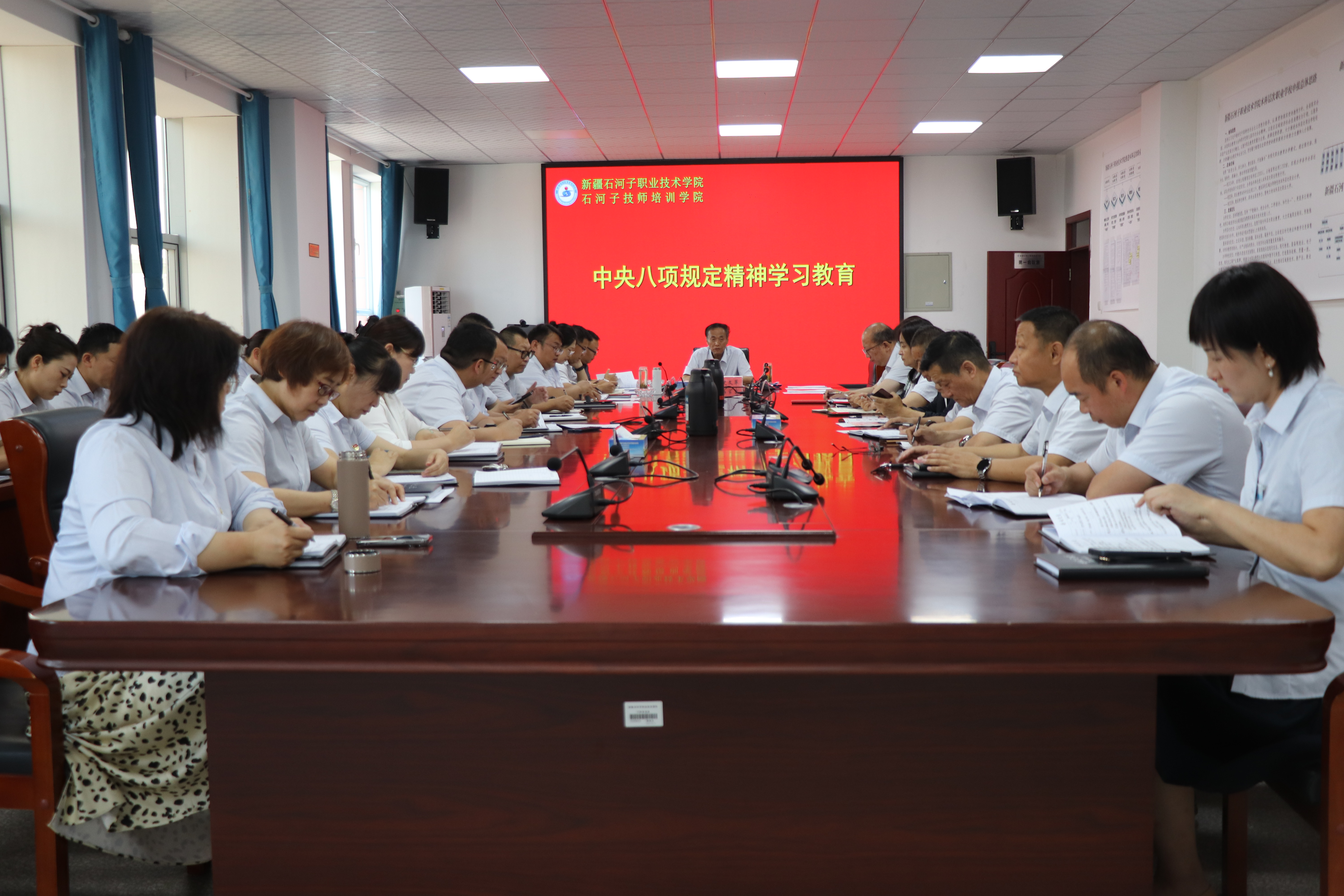 (王需 杨慧报道)为扎实开展深入贯彻中央八项规定精神学习教育,持续加强作风建设,2025年6月5日上午,新疆石河子职业技术学院在厚德楼三楼会议室举行第7次理论学习中心组集体学习会议,学校党委书记史文革主持会议,学校党委委员、全体中层干部参加会议。