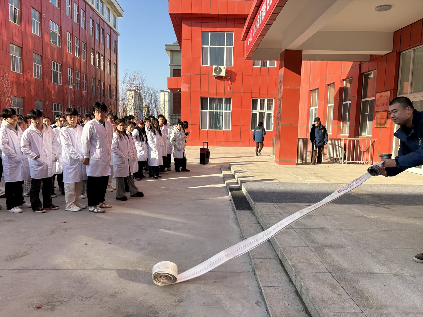 (赖凡 报道)为提升师生消防安全意识与应急避险能力,2025年11月12日,食品工程学院(化工与环境工程学院)组织学生在善行楼开展消防演练活动。学院领导及相关教师、应用化工技术251班、食品检验检测技术251班学生共同参与。