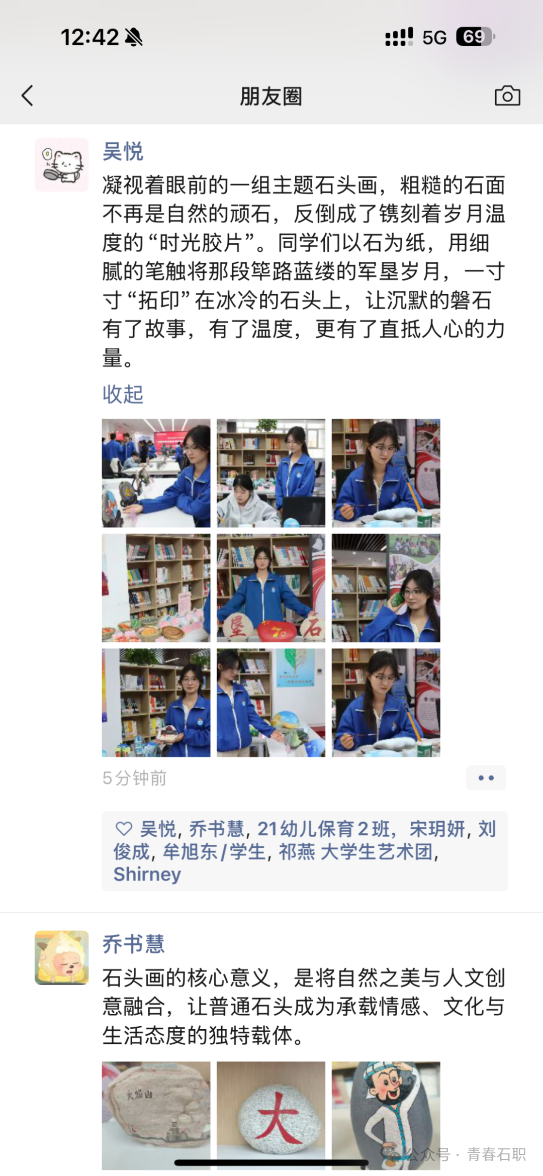 观展结束后,学员们纷纷与心仪的石头画打卡合影,用镜头记录下这份独特的感动;还有学员自发拍摄15秒快闪视频,将石头画里的兵团故事分享给更多同学。“以前觉得‘时代担当’很大,现在才明白,它就藏在前辈的奋斗里,藏在我们当下的每一次努力中。”一位学员在快闪视频里这样说道。此次石头画展览思政实践课,不仅让青马学员读懂了兵团精神的丰富内涵,更让他们找到了青春与使命的连接点。