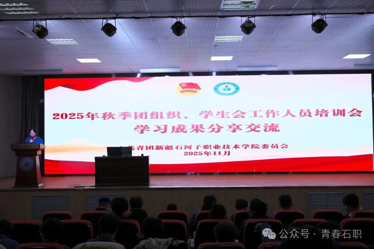 2025年11月11日,新疆石河子职业技术学院团委举行2025年秋季团组织、学生会工作人员培训结业仪式,各二级学院团总支书记及130余名团学骨干共同参加本次仪式。