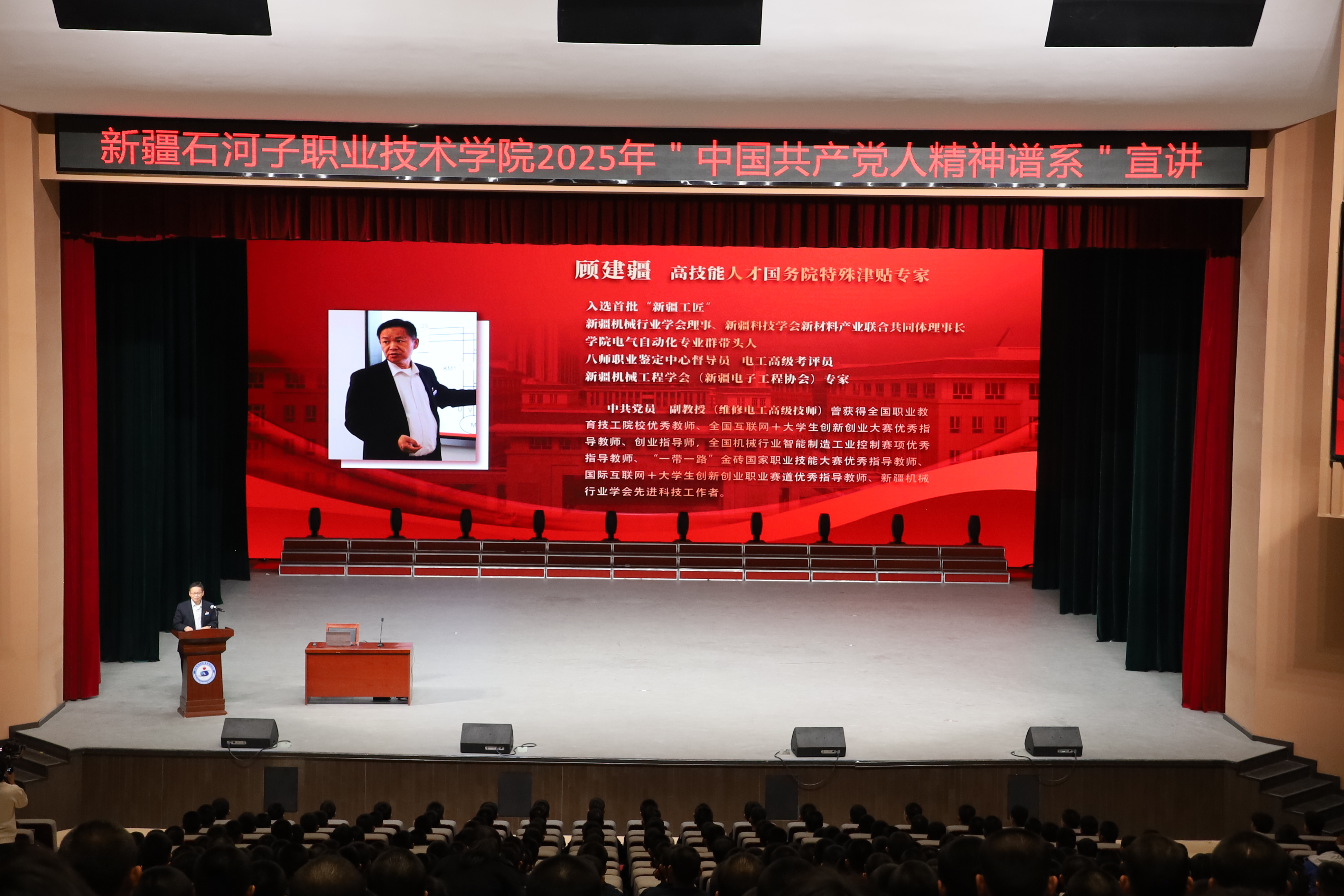 (王需 杨慧报道)为深入学习贯彻党的二十届四中全会精神,落实全国高校“立报国强国大志向 做挺膺担当奋斗者”宣传教育要求,传承兵团红色基因,培育师生“扎根兵团、服务边疆”的职业情怀。2025年12月4日下午,新疆石河子职业技术学院“中国共产党人精神谱系”校内宣讲活动在学术报告厅开讲。学校党委书记史文革,党委副书记、院长林炯,副院长马彩梅及相关部门负责人、二级学院领导,1000余名师生代表齐聚一堂,共同接受这场精神的洗礼与思想的淬炼。
