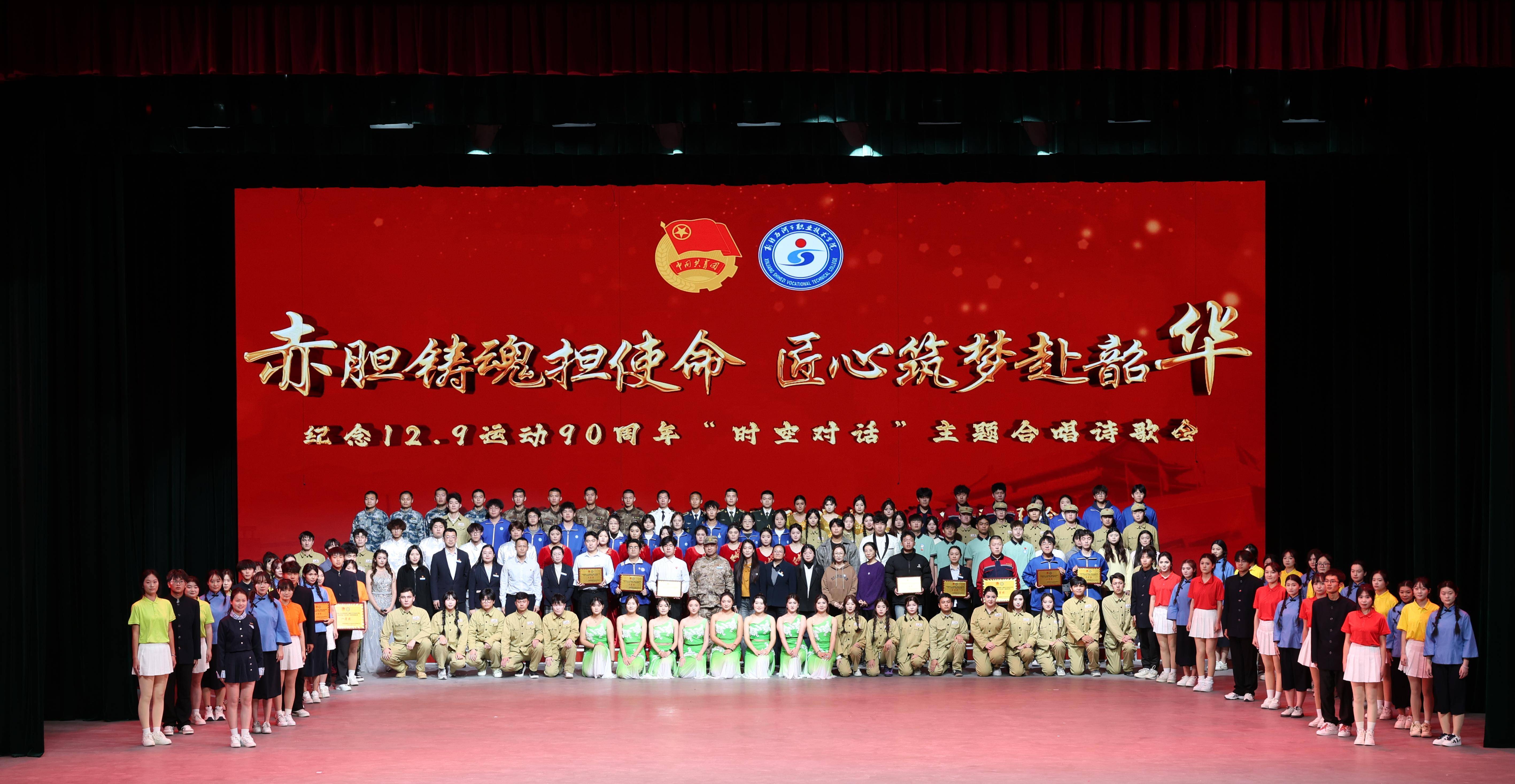 本次活动以“赤胆铸魂担使命 匠心筑梦赴韶华”为主题,各二级学院积极组建合唱队与诵读队参与展演。合唱环节中,各学院合唱队深情演绎必选曲目《石职之歌》,展现学院精神风貌;自选红色经典歌曲《祖国不会忘记》《保卫黄河》《我和我的祖国》等旋律激昂,唱响了新时代青年的爱国强音。诵读队伍则围绕“一二·九”运动精神、红色传承与青春担当,诵读《红船》《青春立于家国 热血写在河山》《以青春之名 纪念“一二·九”运动》等诗歌作品,声情并茂地诠释了革命先烈的壮志豪情与当代青年的使命意识。整场活动以艺术形式深化历史教育,生动体现了“德技双馨,知行合一”的校训内涵,将技艺锤炼与品德修养融为一体,引导师生在实践中学史明志、践履笃行。