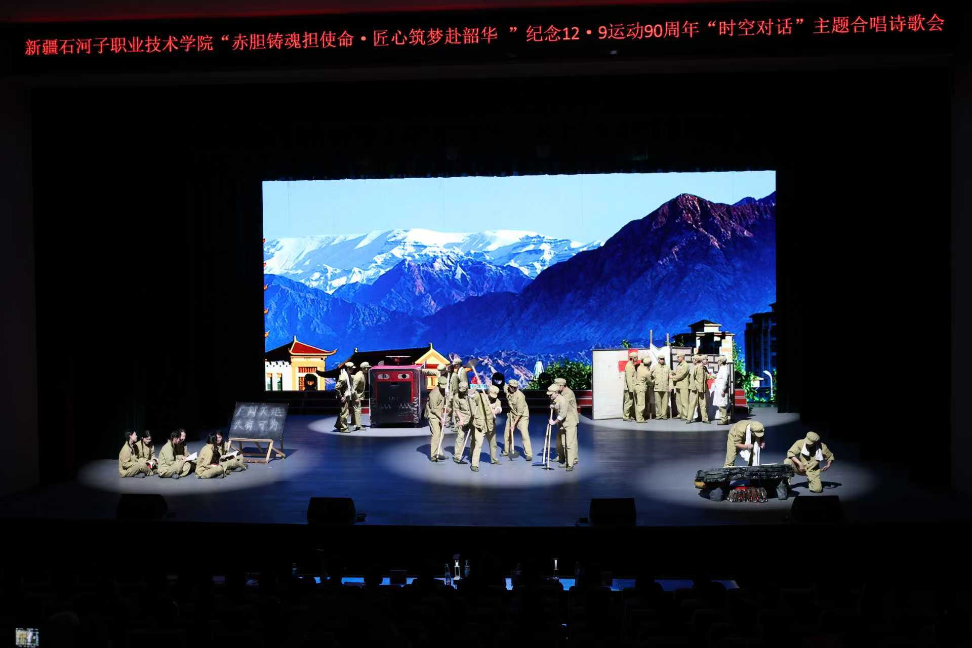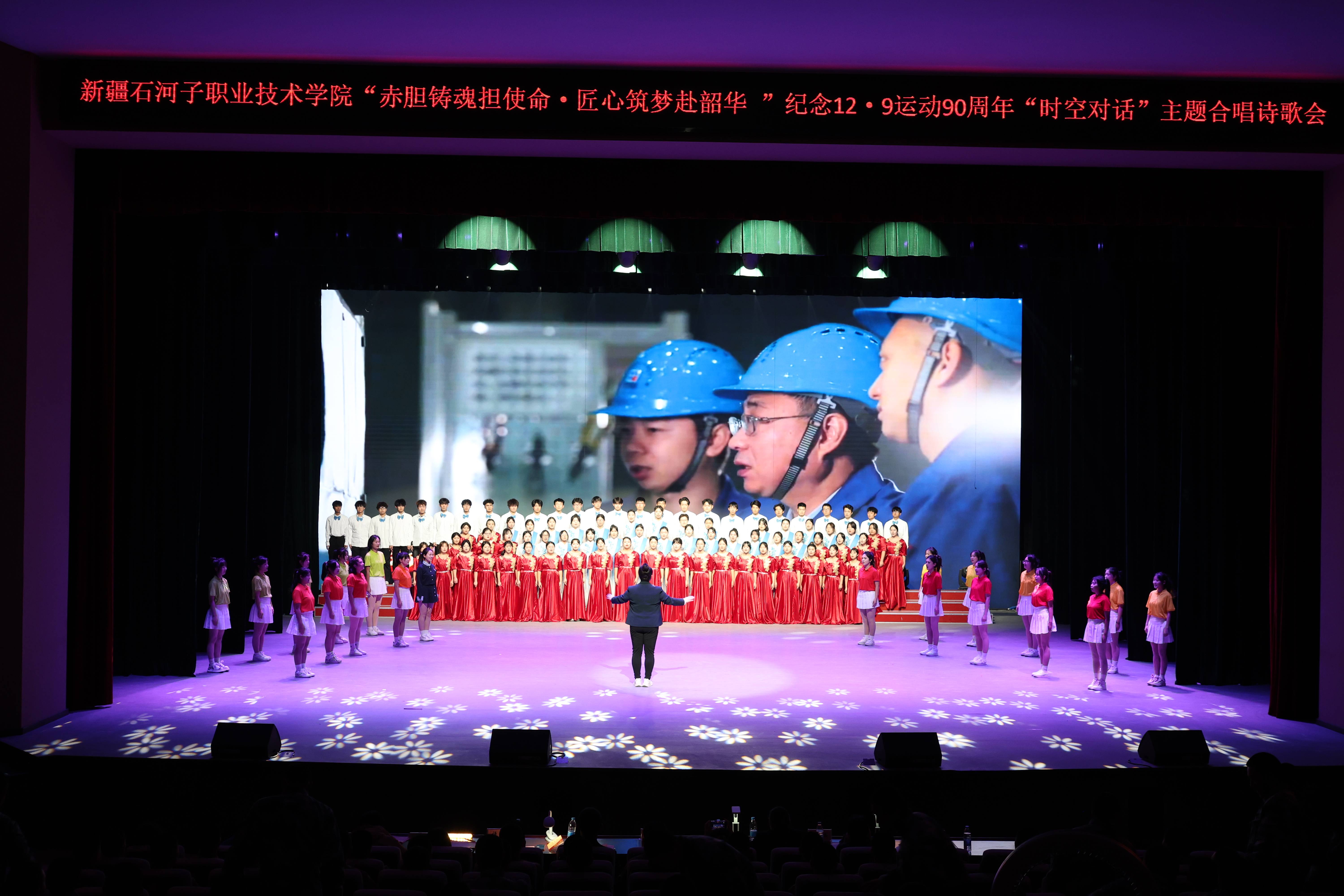 (王林锋 报道)为纪念“一二·九”运动九十周年,引导广大师生铭记历史、缅怀先烈,弘扬伟大爱国主义精神、伟大抗战精神,2025年12月9日,新疆石河子职业技术学院团委在学术报告厅举办纪念“一二·九”运动九十周年主题合唱诗歌会。活动旨在通过激昂歌声与青春诗篇,回望峥嵘岁月,传承红色基因,激励师生胸怀报国情怀,争做挺膺担当的奋斗者,切实将共青团青年工作要求融入立德树人实践,筑牢信仰之基。