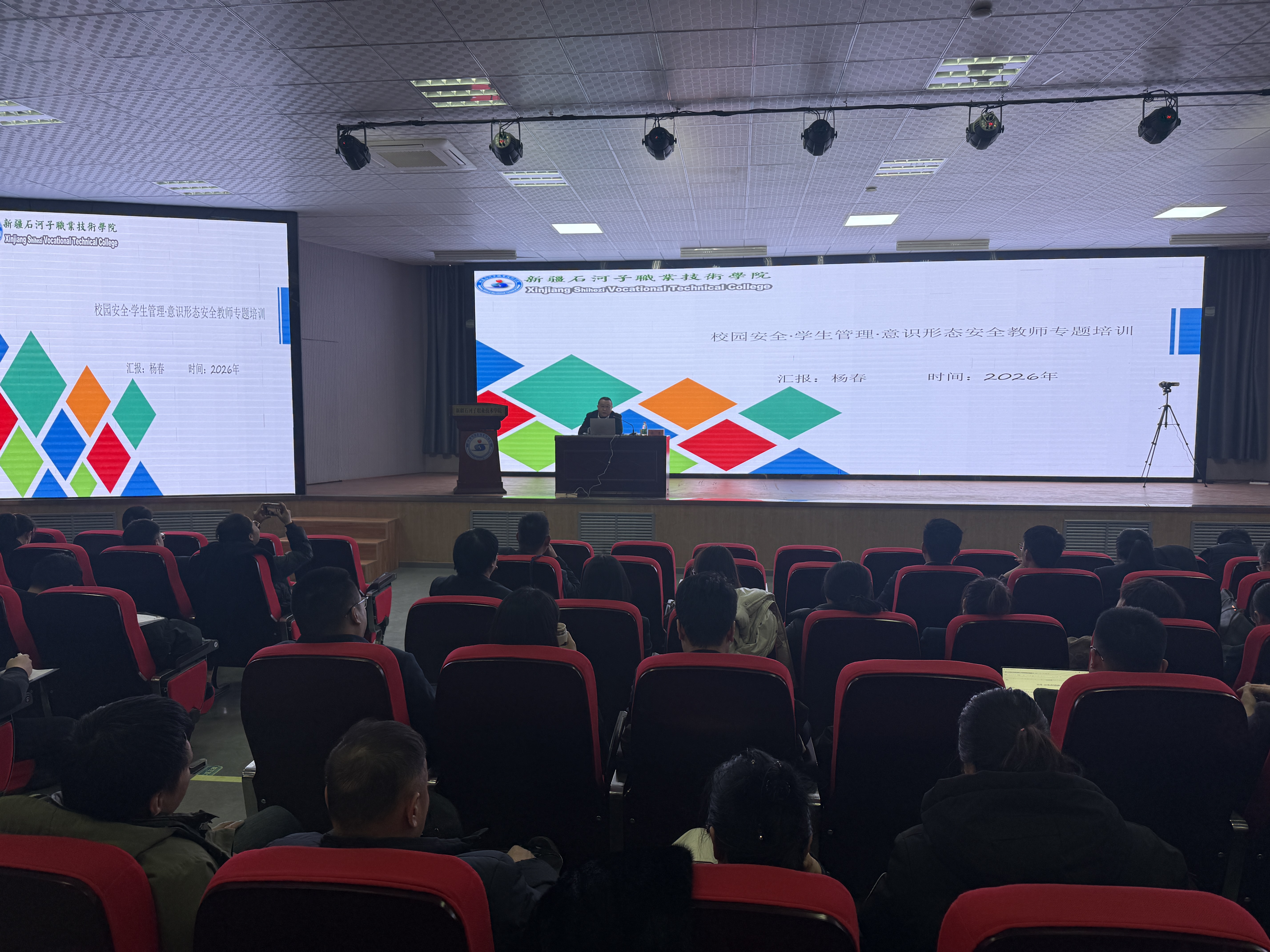 本次集中培训邀请多位省内外职业教育领域专家学者授课。深圳职业技术大学移动互联应用技术专业主任王贤辰以《仓颉编程技术与应用》为题;石河子高级中学党委书记付义霞围绕“坚守立德树人初心 筑牢廉洁从教防线”主题;新疆交通职业技术大学党委常委、组织部部长叶剑锋作“浅谈职业技术大学相关理论与探索”专题讲座;学校保卫处负责人杨春则聚焦校园安全工作重点,开展安全意识提升专项培训。