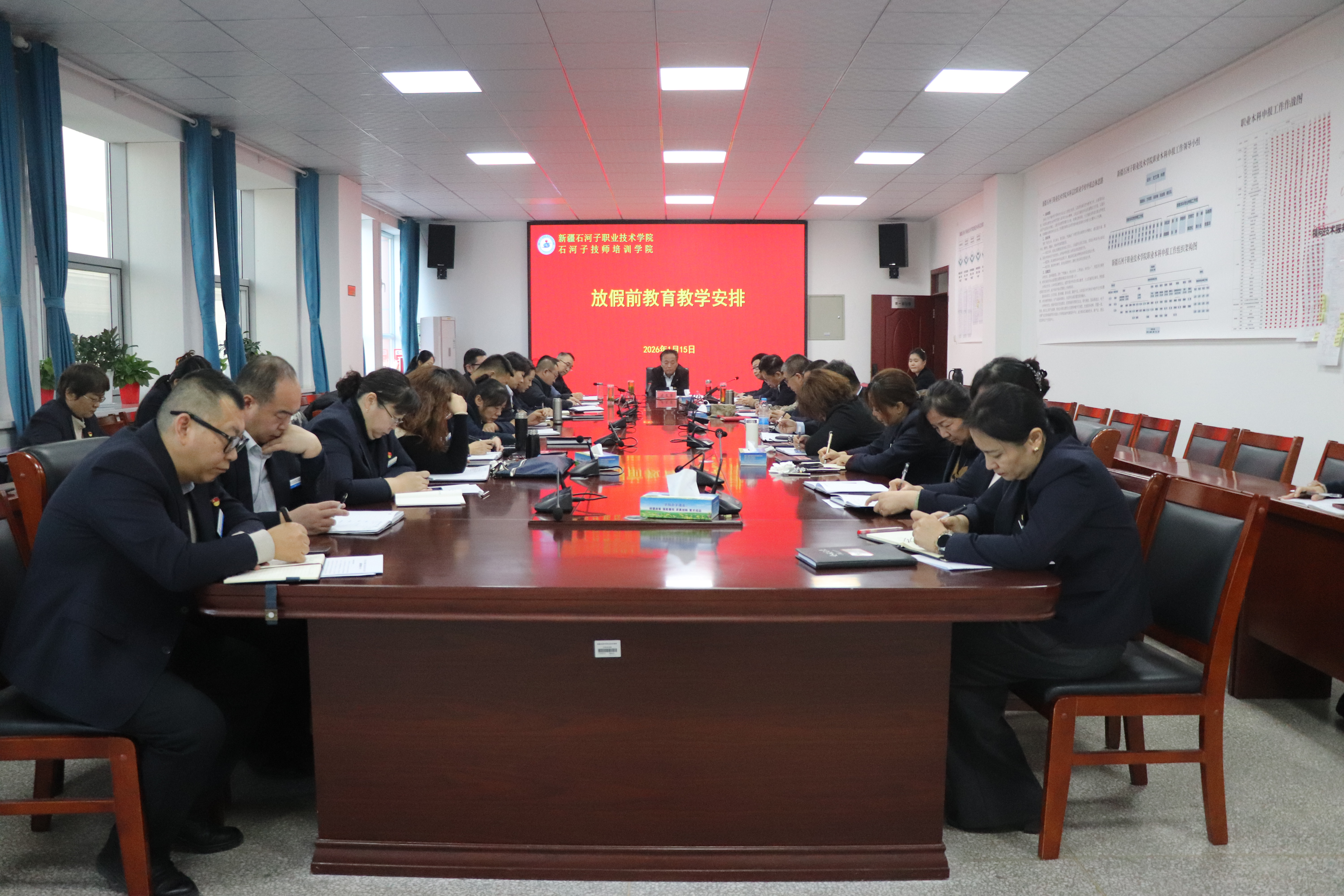 (杨慧 报道)为切实做好节前各项保障工作,确保全体师生度过一个平安、廉洁、祥和的假期,2026年1月15日上午,新疆石河子职业技术学院召开放假前工作安排会议。学校党委书记史文革主持会议,学校党委委员、各部门负责人及二级学院书记、院长参加会议。