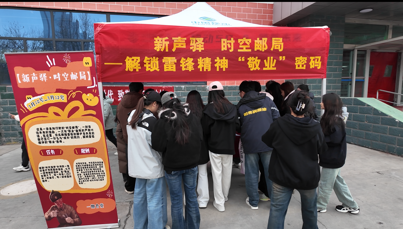 五站闯关层层递进,助力学子解锁雷锋精神密码。首站【星火驿·知音回响】设在学术报告厅前广场,队员们朗读并阐述“雷锋日记”节选,在“时光见证人”见证下解锁“初心密码”,获得首枚“星火印章”;【力行驿·专业知多少】考验队员技能与默契,同学们结合专业参与红绿灯食物分类、五金工具盲猜、反诈知识快闪答题等关卡,在寓教于乐中领悟“学好本领、服务社会”的行动密码。一期食堂的【新声驿·时空邮局】温情满满,同学们以“这一年,我怎样做一个敬业的人”为主题给未来的自己写信,解锁“敬业”密码并获得“新声勋章”;图书馆前的【致远驿·盲盒挑战】聚焦日常生活,小队随机抽取“帮保安大叔站岗”“为宿管阿姨打水”等好人好事任务卡,在实践中体会“平凡中奉献,行动中致远”的内涵。此外,【惊喜驿站·爱的抱抱】作为彩蛋环节,玩偶NPC随机互动,为活动增添温暖与惊喜。