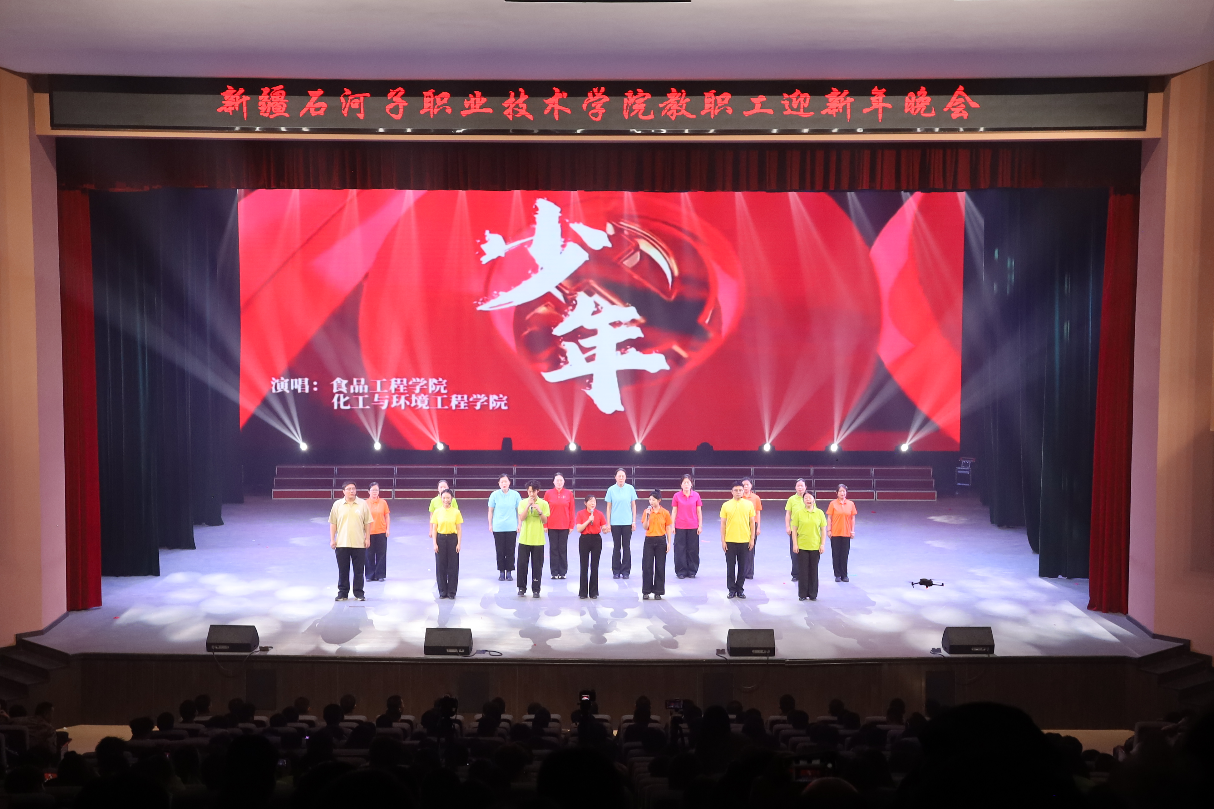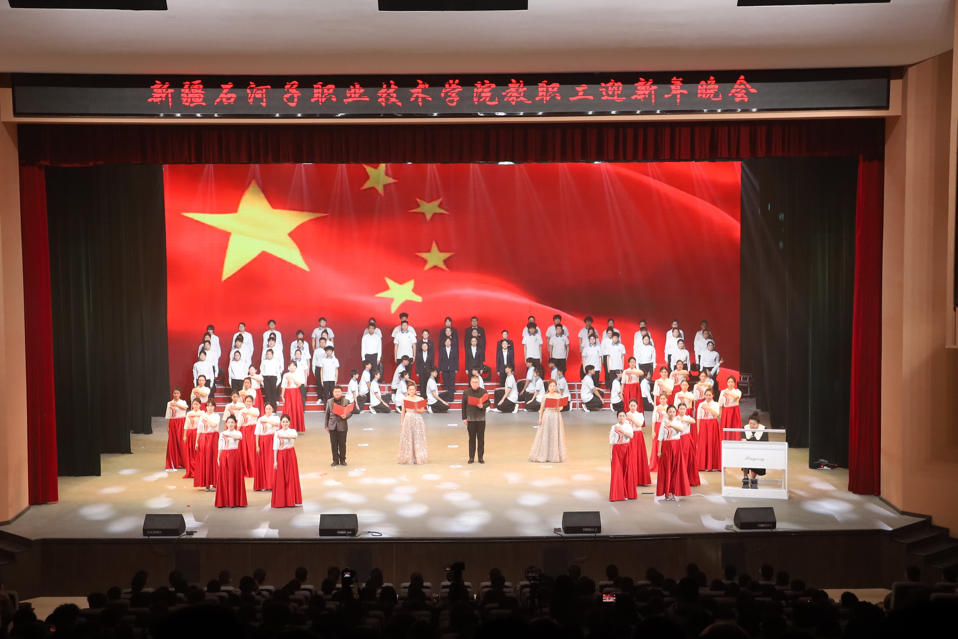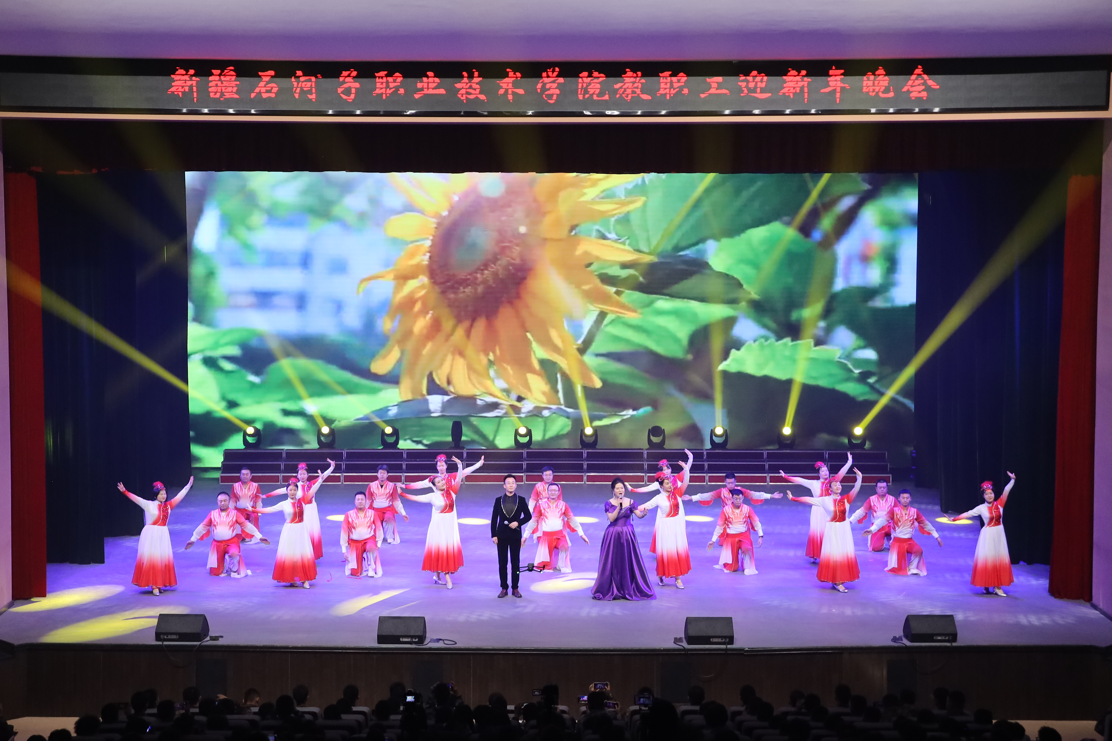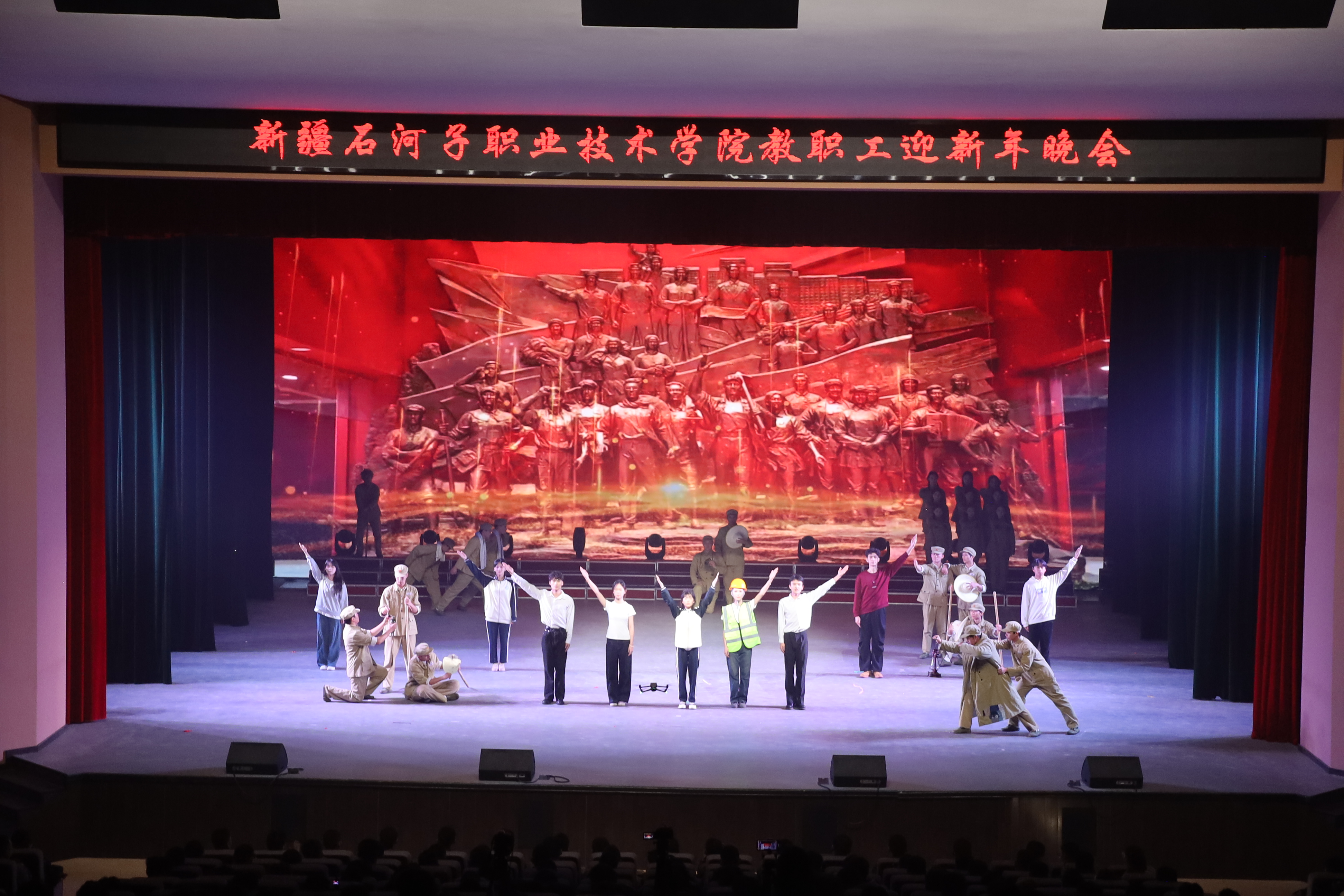 雪域天山迎师友,戈壁教坛庆团圆。2025年12月29日,新疆石河子职业技术学院以“感恩同行匠心路,携手共迎锦绣春”为主题,在学术报告厅举行2025年教职工迎新年晚会。学校党委书记史文革携班子成员,与全体教职工、学生代表1000余人欢聚一堂,共话教育初心,共庆盛世新年。