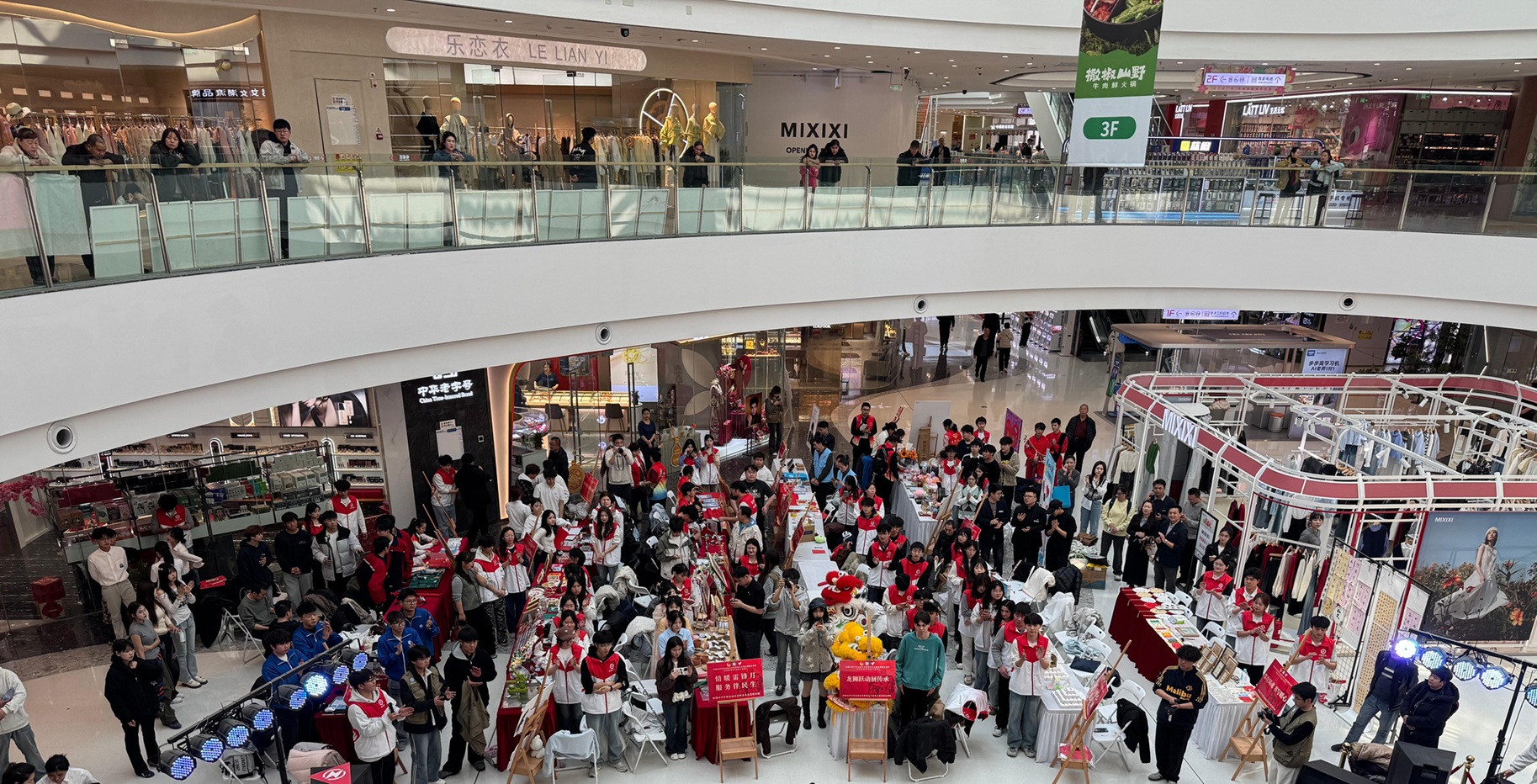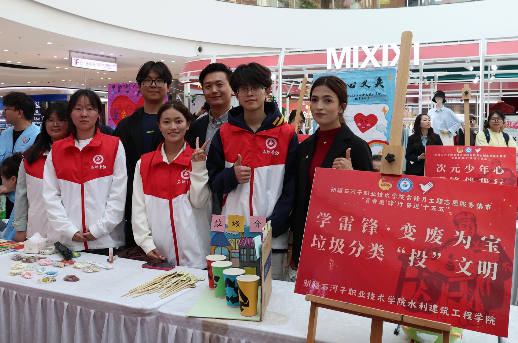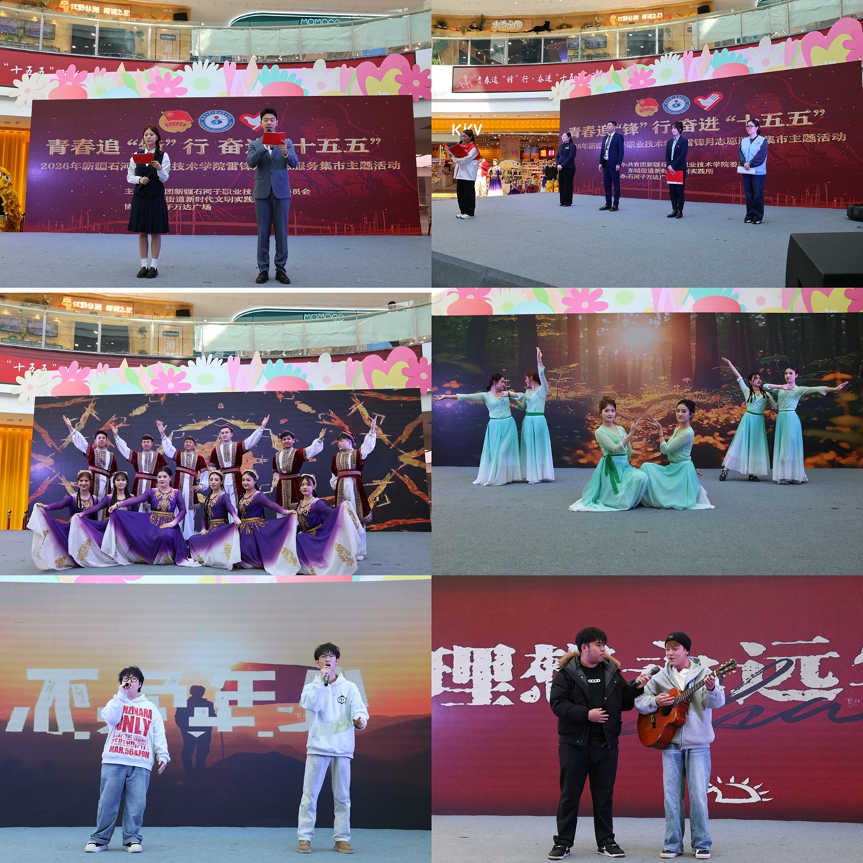(白奇 报道)为大力弘扬雷锋精神,深化青年志愿服务实践内涵。2026年3月19日下午,新疆石河子职业技术学院团委联合东城街道新时代文明实践所,在石河子万达广场共同举办“青春追‘锋’行 奋进‘十五五’”雷锋月主题志愿服务市集活动,来自学校各二级学院的200余名青年志愿者积极参加。