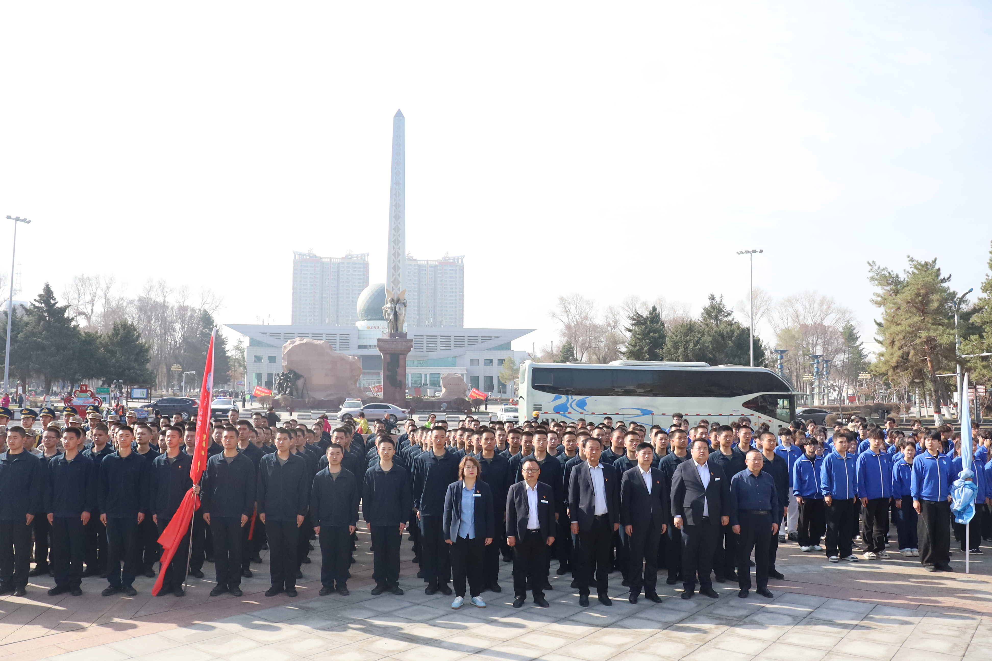 (王需 杨慧报道)清明寄哀思,薪火传精神。为缅怀军垦先烈、传承红色基因、弘扬兵团精神,扎实推进“行走的思政课”实践教育,2026年4月1日,新疆石河子职业技术学院组织师生代表前往新疆兵团军垦博物馆王震将军铜像前,开展“忆军垦峥嵘岁月・铸时代奋进担当”清明祭英烈主题活动。学校领导、相关部门负责人、食品工程学院(化工与环境工程学院)师生代表、军士生及青马班学员共计900余人参加活动。