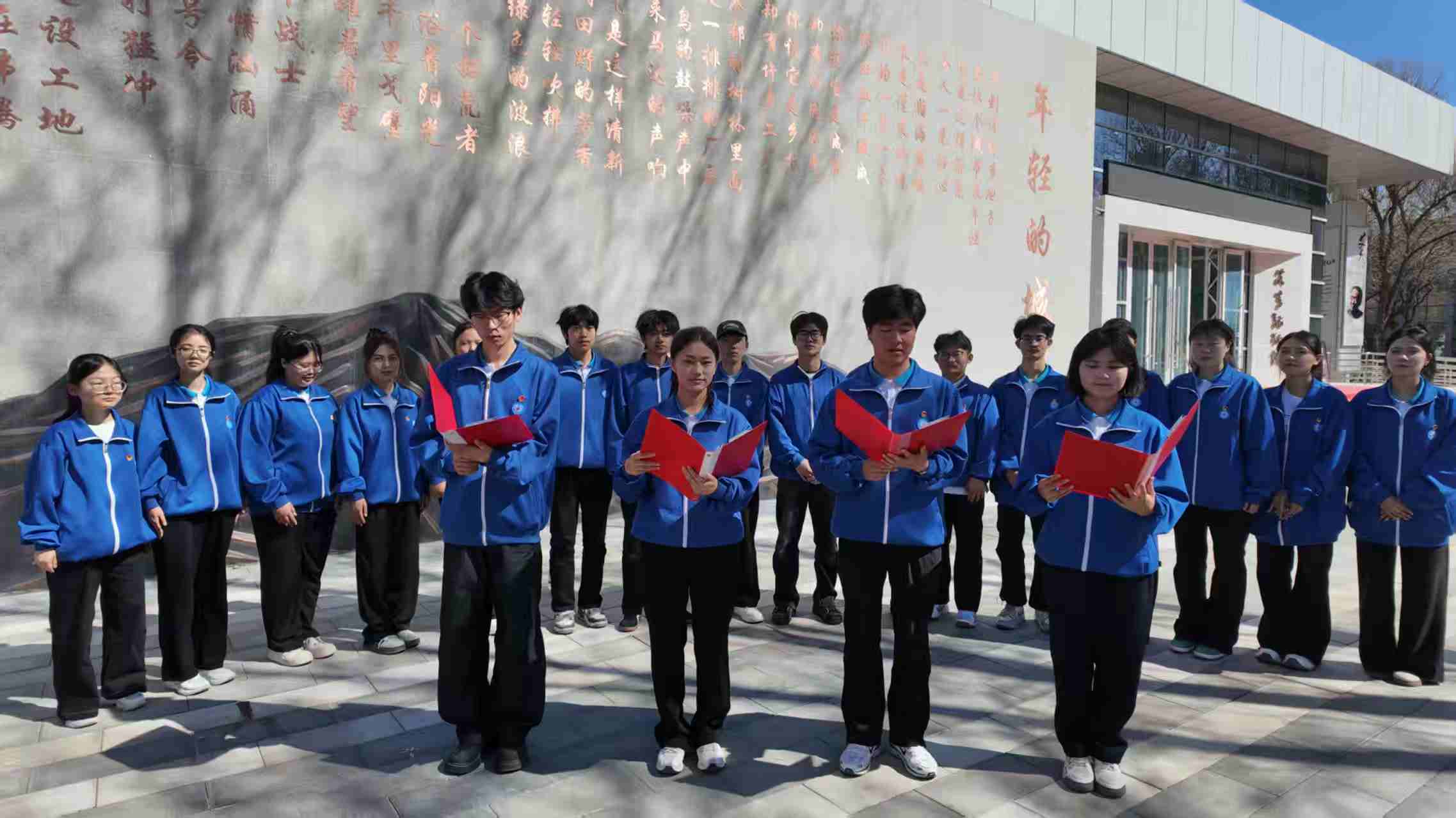 走进艾青诗歌馆,师生们怀着崇敬之心步入展厅。在讲解员引导下,大家驻足观看艾青先生珍贵手稿、照片与生活用品,深入了解其扎根边疆、讴歌土地的创作历程。透过记录边疆建设岁月的历史影像、饱含深情的诗句手迹,师生们仿佛置身艰苦卓绝的奋斗年代,深刻感悟军垦英烈为边疆建设奉献青春与生命的崇高品格。在诗歌馆阅读交流区,全体师生肃立默哀,向为边疆建设事业献身的军垦英烈致敬。随后,在带队老师组织下,师生们齐声朗诵《年轻的城》:“不是瀚海蜃楼,不是蓬莱仙境,它的一草一木,都由血汗凝成……”铿锵有力的诵读声回荡馆内,既是对土地的深情礼赞,更是对英烈不畏艰险、奉献一切精神的生动铭记。