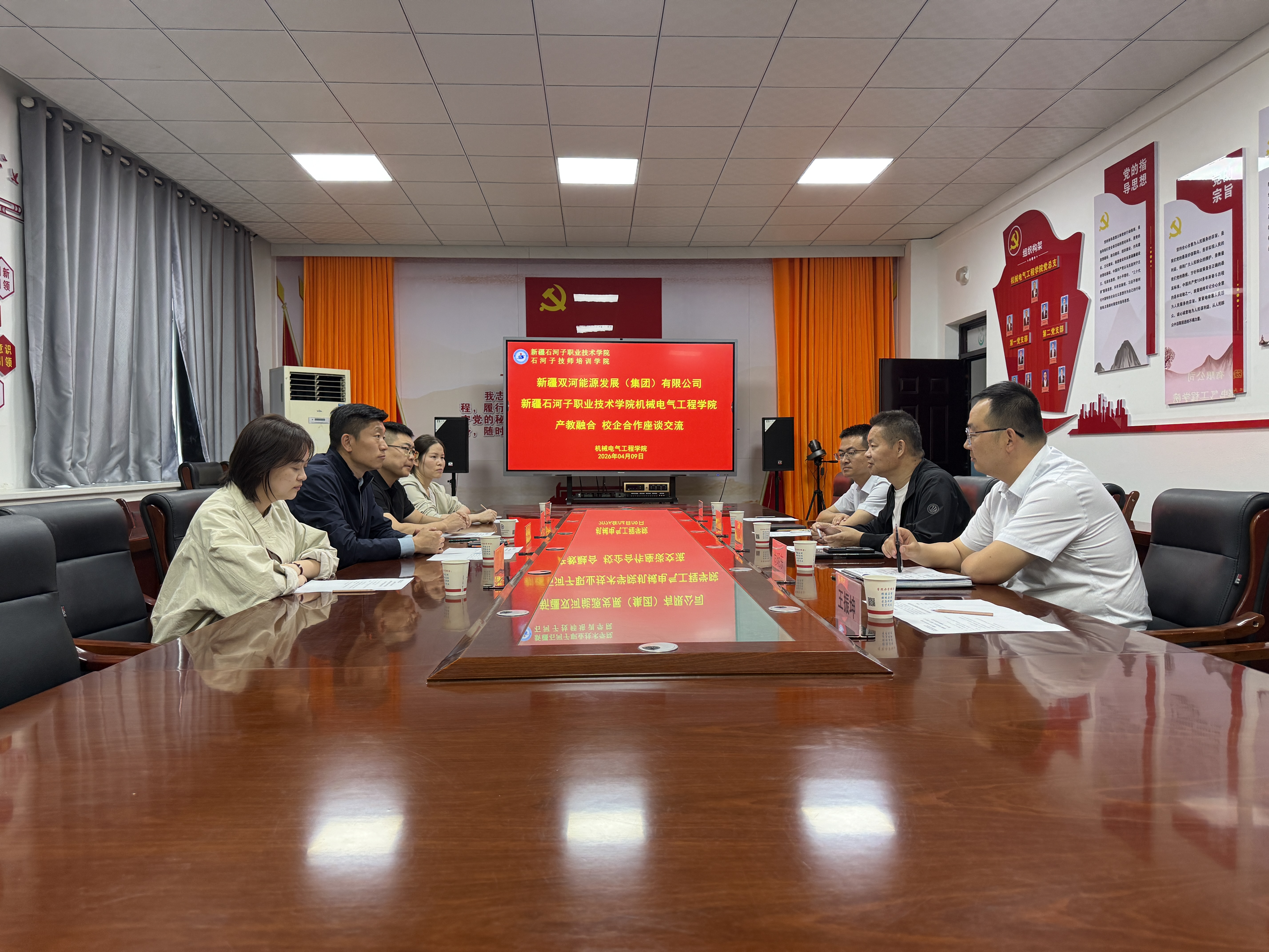 (王振坤 报道)2026年4月9日,新疆双河能源发展(集团)有限公司党委副书记(主持工作)、副董事王涛一行到访机械电气工程学院考察交流。机械电气工程学院院长顾建疆及相关教师参加座谈。