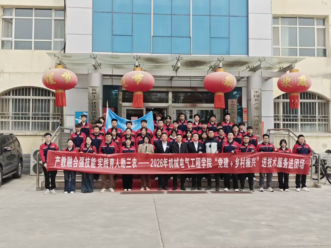 (兰雯渝 报道)为深入落实职业教育产教融合、实践育人要求,紧扣学院教学改革安排,4月20日,机械电气工程学院“党建+乡村振兴 送技术服务进团场”春播助农活动启动仪式在一四九团顺利举行。一四九团党委常委、副团长董峰,机械电气工程学院党总支书记辛延波、副院长尹君,合作企业代表及相关专业的30余名师生参加仪式。