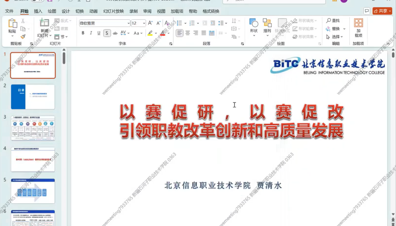 为进一步提升参赛团队的教学能力与备赛水平,学校还特邀教育部职业院校信息化教学指导委员会副主任、北京信息职业技术学院原副校长贾清水教授为参赛团队开展线上专题培训。贾教授以“以赛促研 以赛促改 引领职教改革创新和高质量发展”为题,从新时代职教改革新要求、教学能力比赛方案解析两个方面,为参赛教师提供了系统专业的指导,帮助参赛团队理清备赛思路、突破备赛瓶颈。