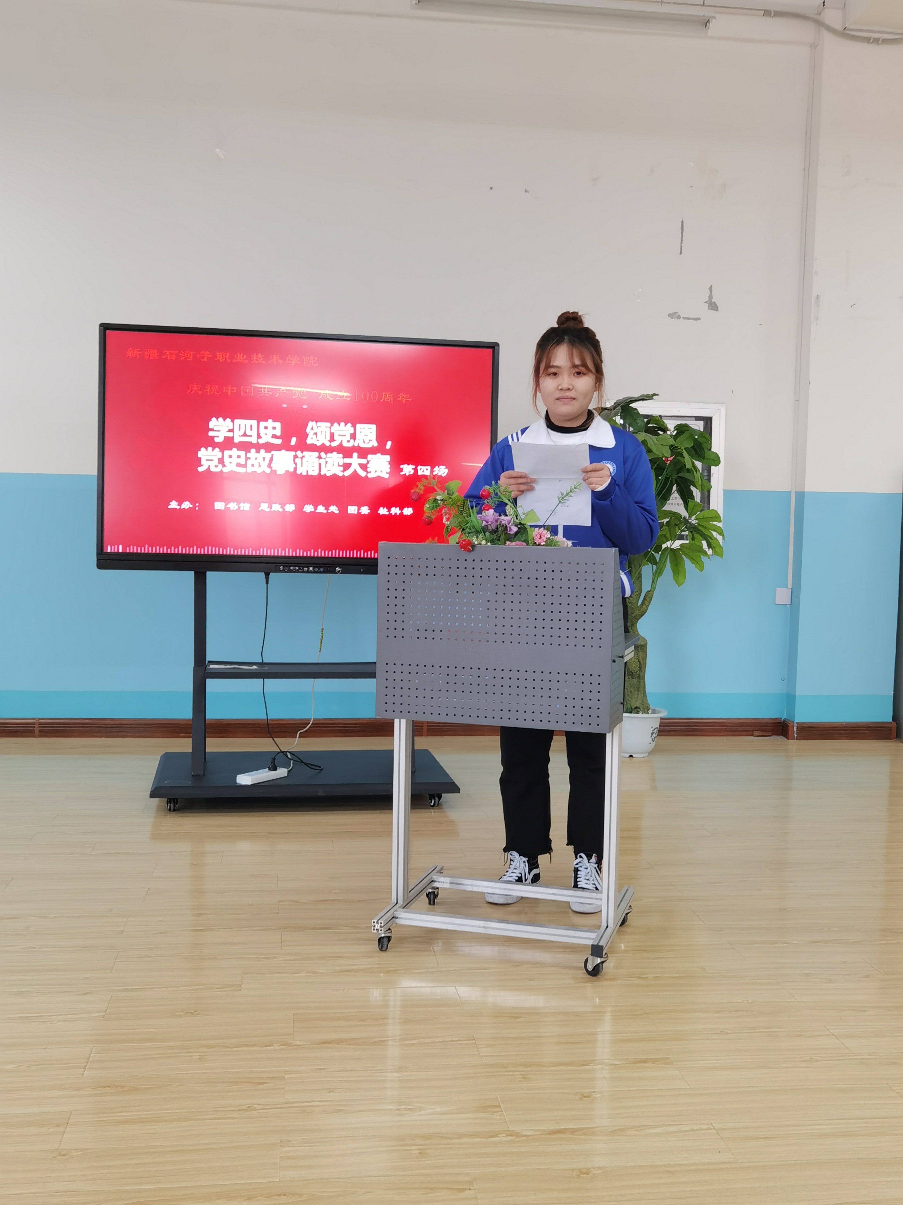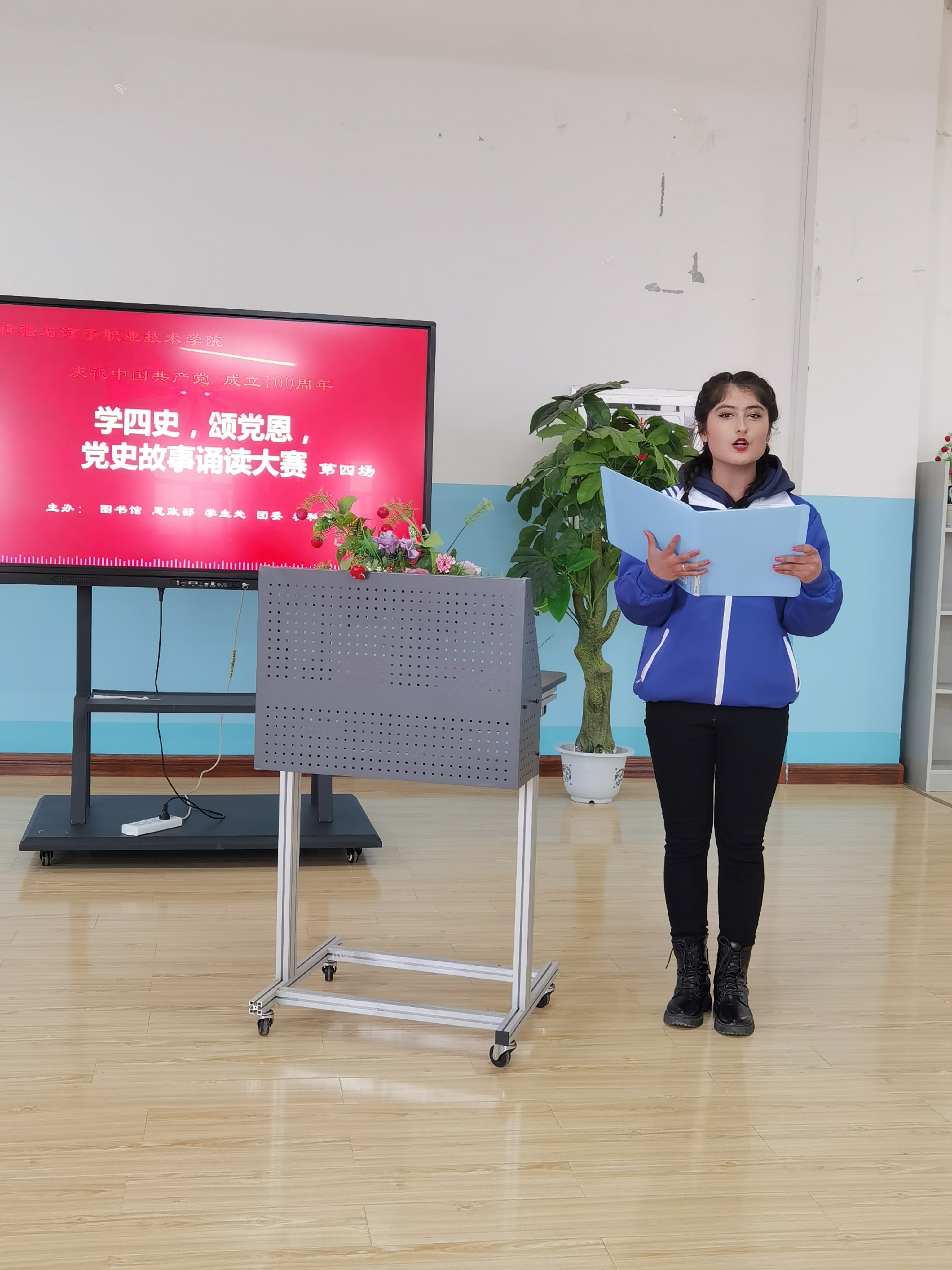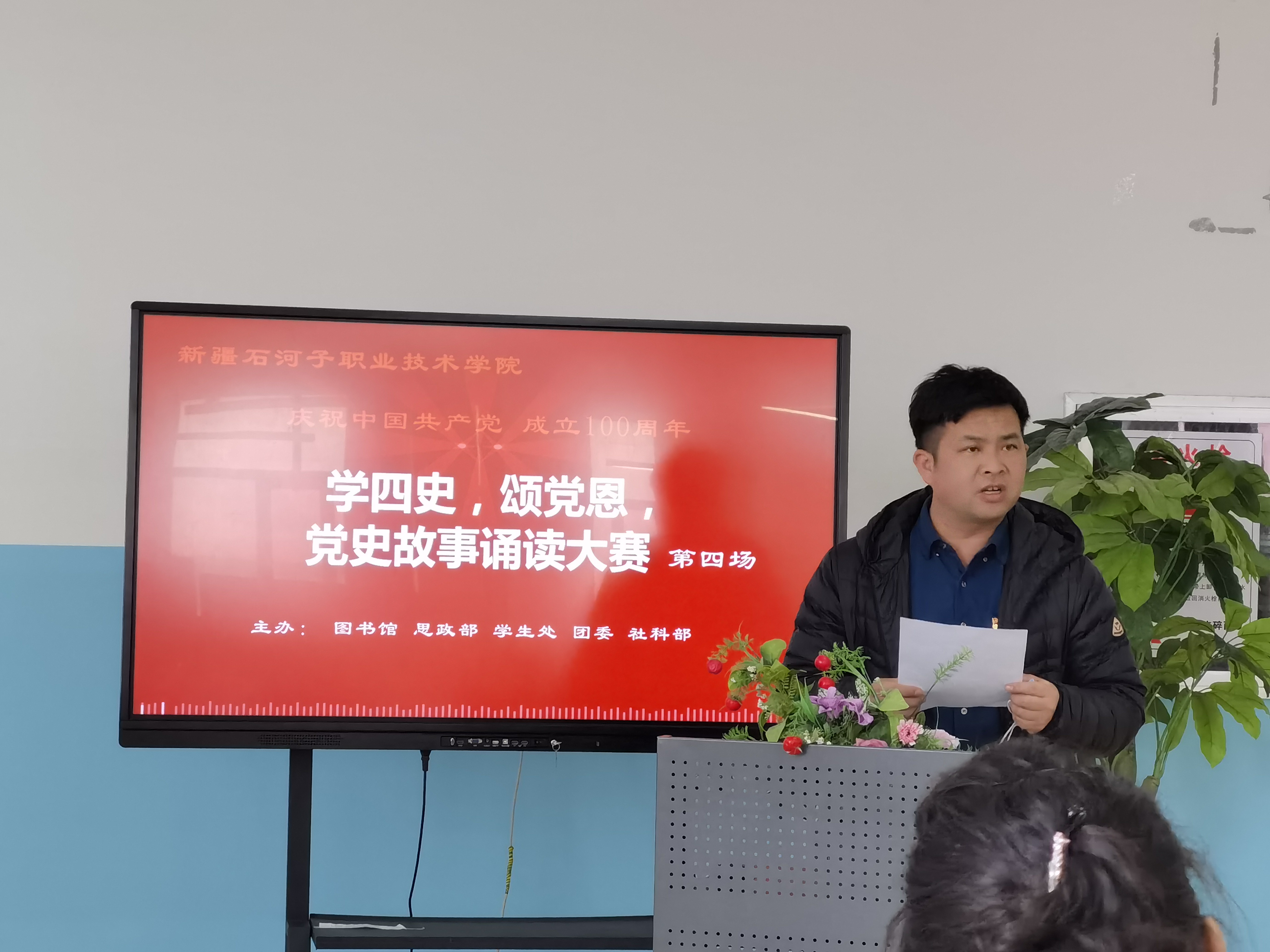 3月30日 ,由新疆石河子职业技术学院图书馆和思政部主办的“学四史 颂党恩”第四场党史故事诵读大赛在图书馆二楼阅览室举行。