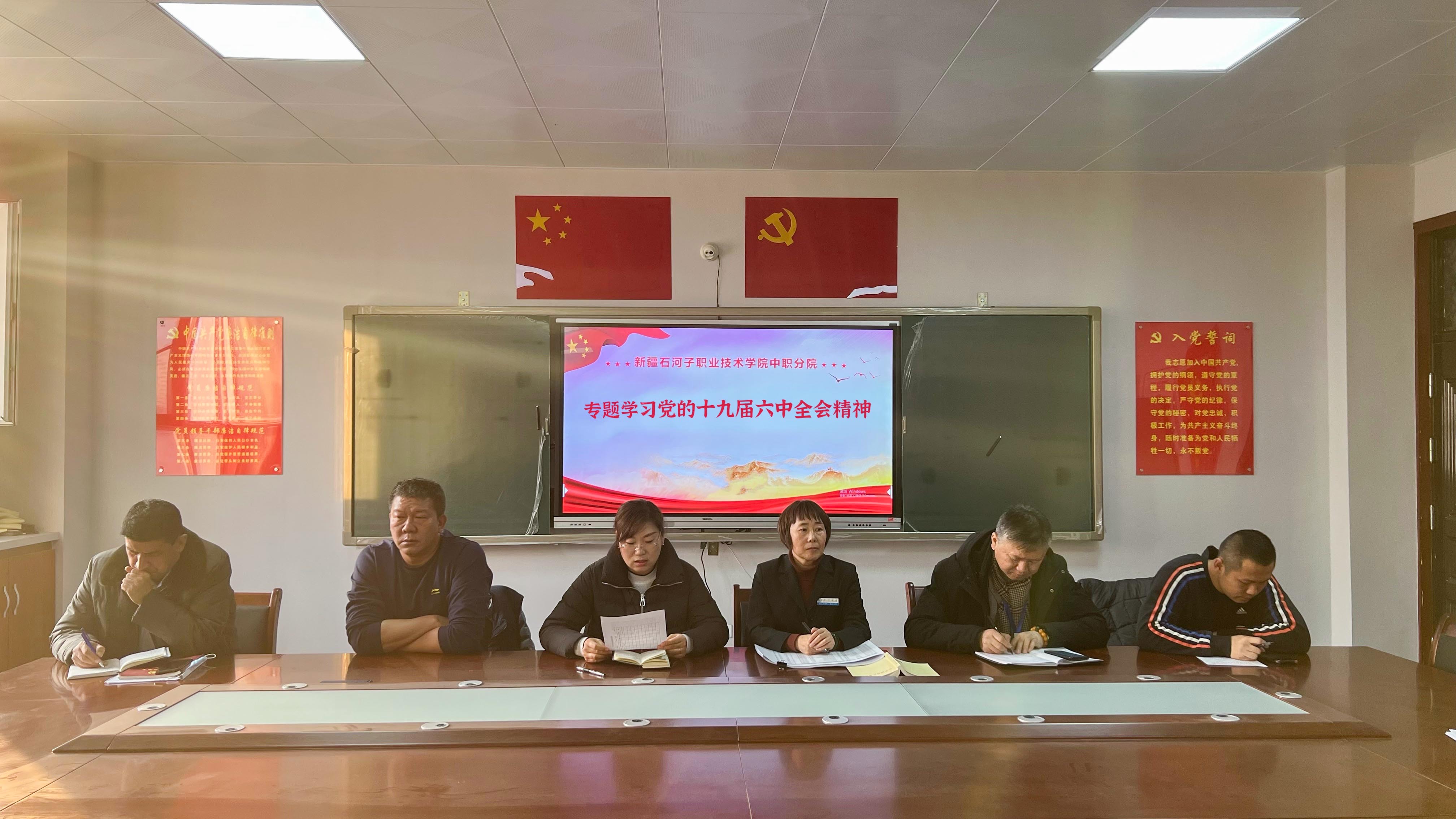 新疆石河子职业技术学院中职分院党支部召开专题研讨会议,深入学习党的十九届六中全会精神,分院全体老师参与。