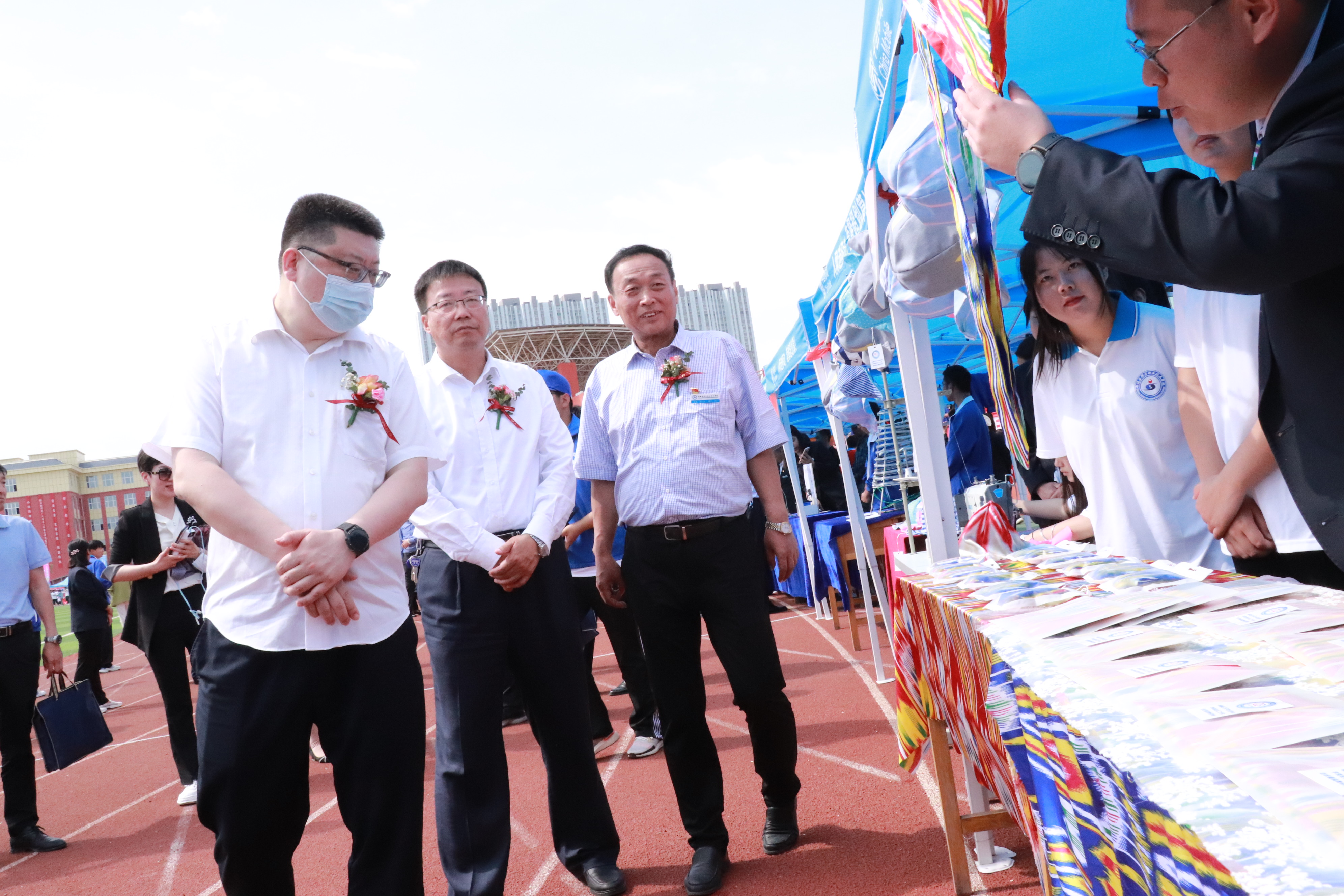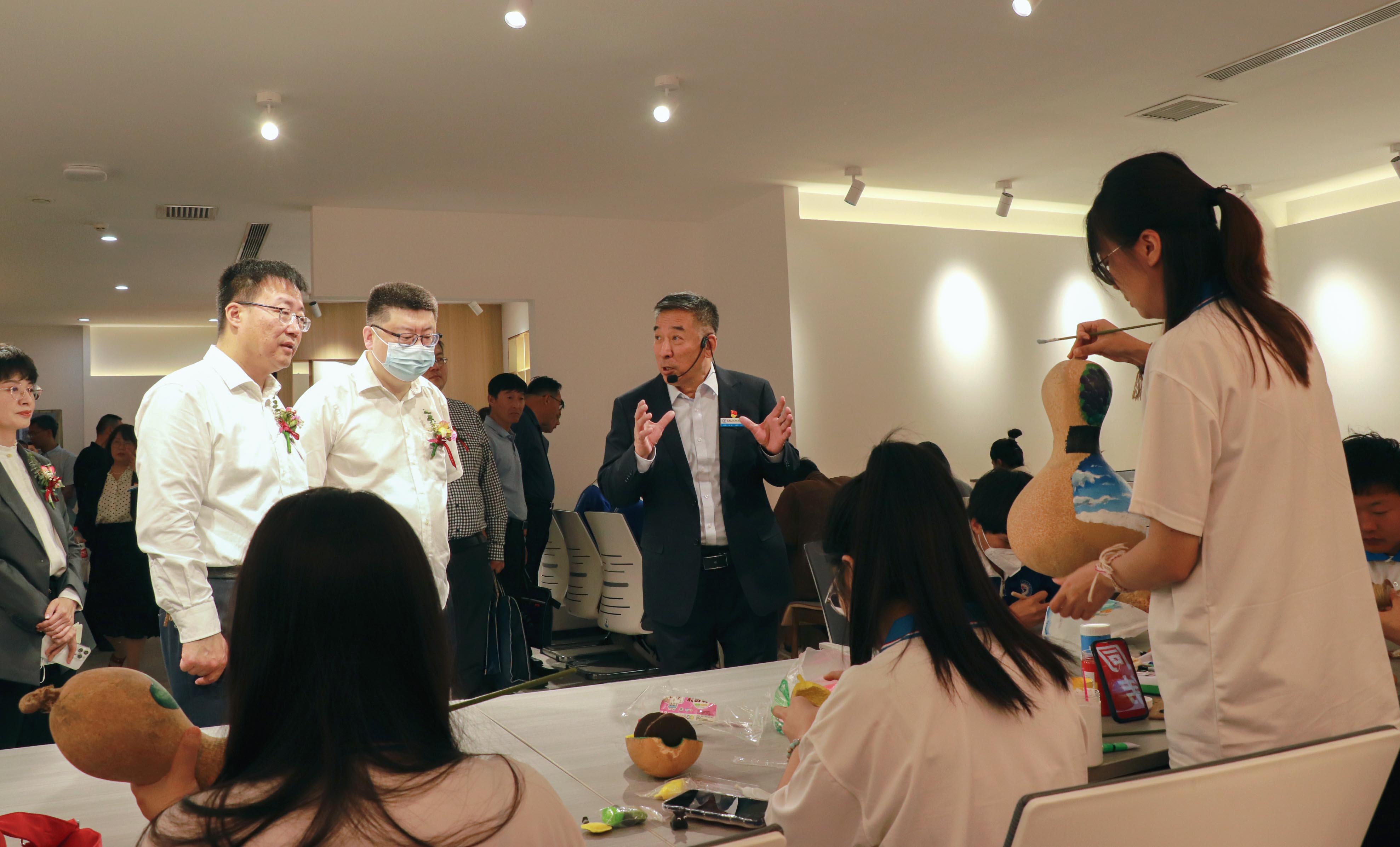 领导及企业嘉宾一行参观了兵团职业教育成果展示、学生技能现场展示及学院创新创业中心,无人机、3D打印、数字媒体作品设计、烘焙食品制作、烹饪专业雕花作品、传统文化工作室艺术作品、社团活动等展位,采取实物展品、宣传展板、画册、多媒体影像等方式,集仪式、展览、观摩体验活动等为一体,向与会领导、嘉宾宣传展示了兵团职业教育取得的重大进步及职业教育改革发展的办学特色和成果,吸引了现场领导师生的驻足观看、拍照、品鉴,纷纷翘起大拇指为学院发展成就点赞。