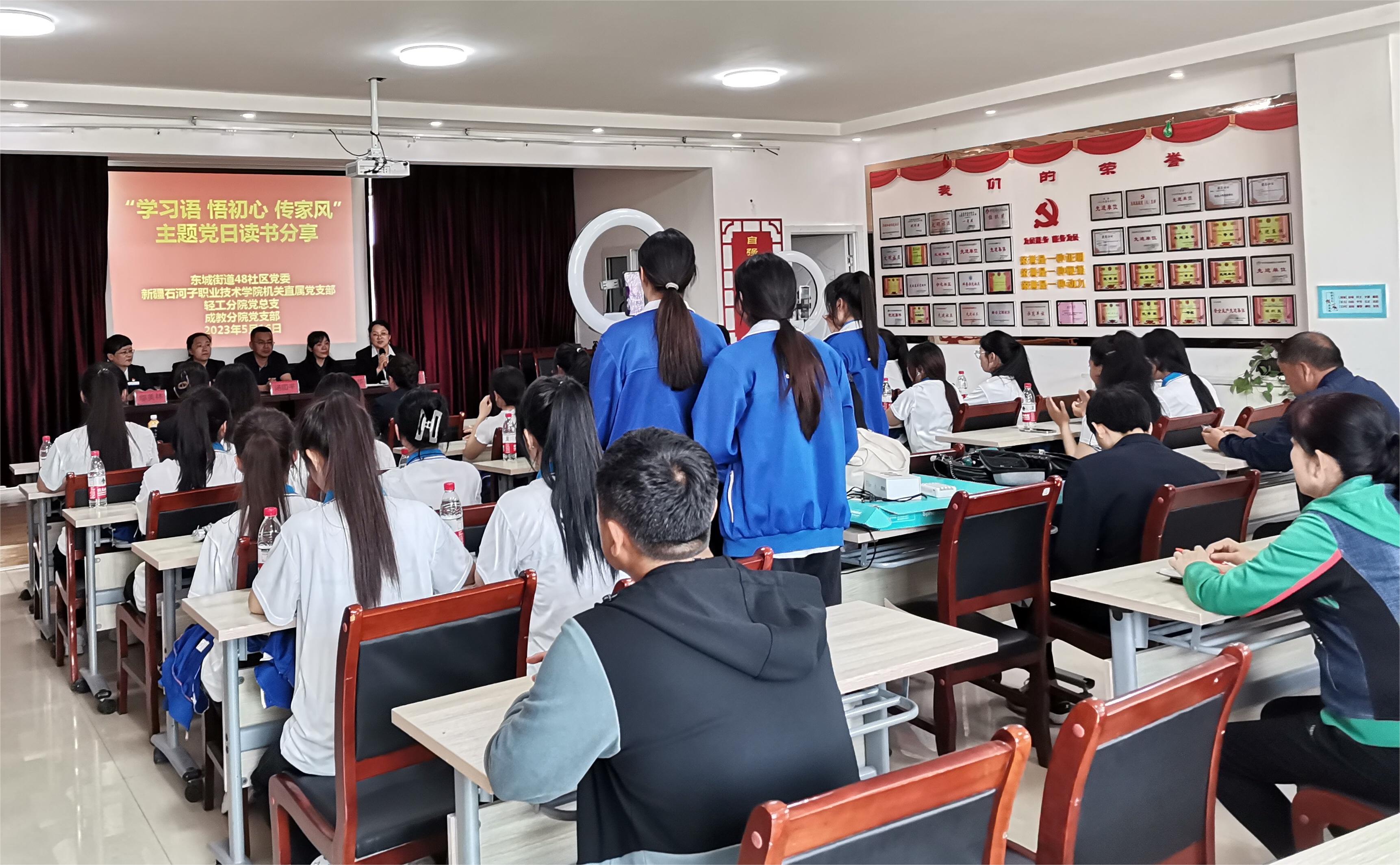 (王慧报道)为深入贯彻落实《关于印发“新疆石河子职业技术学院‘石城青廉’年轻干部教育管理监督活动方案”的通知》文件精神。近日,新疆石河子职业技术学院机关直属党支部、轻工分院党总支、成教分院党支部走进东城街道四十八社区,和四十八社区党委联合举办了“学习语 悟初心 传家风”石城青廉读书分享系列活动主题党日活动,共计100余人参加了此次活动。