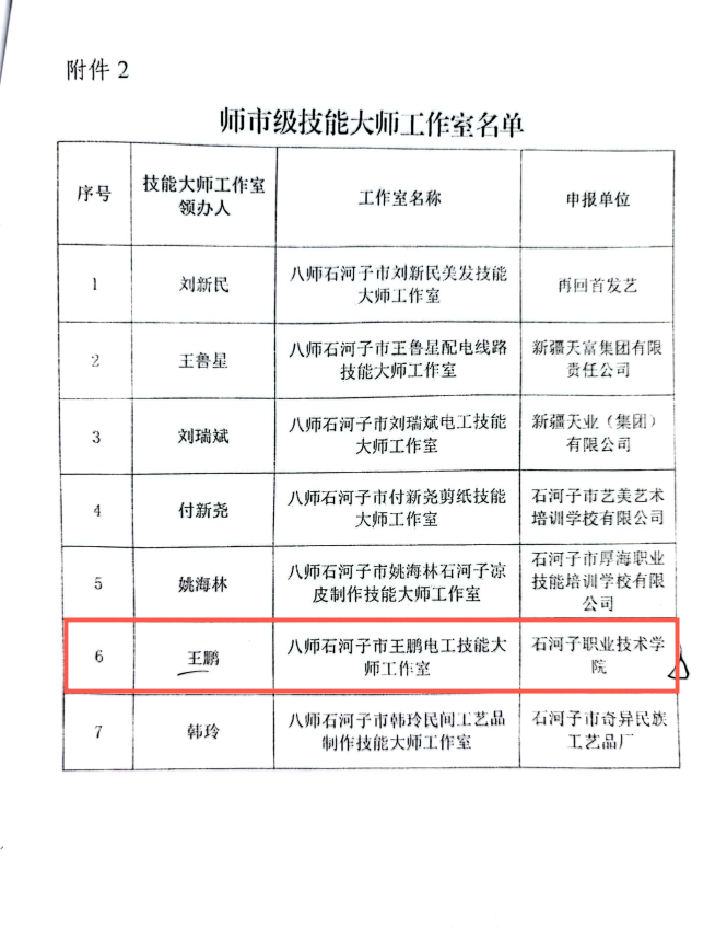 学院刘志旭、李洪波、朱学飞、时夕然、张俊祖、张增文、曹英军、何偲等8位老师荣获“师市级技术能手”称号,王鹏老师被授牌师市王鹏电工技能大师工作室。“师市技术能手”是师市褒奖为高质量发展作出突出贡献的优秀高技能人才设立的技术技能人才荣誉称号,获此荣誉称号代表了个人技术技能水平在师市处于领先地位。技能大师工作室是培养高技能人才的重要平台,也是技能领军人才开展技术攻关、促进技术创新和高技能人才成长的场所。