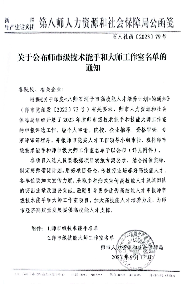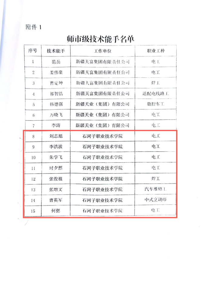 (王需 杨慧报道)近日,师市人社局发布2023年度“师市级技术能手和大师工作室”的通知,新疆石河子职业技术学院9名教师获得殊荣,标志着学院高端技能人才培养、技术创新和职业技能培训迈上新台阶。