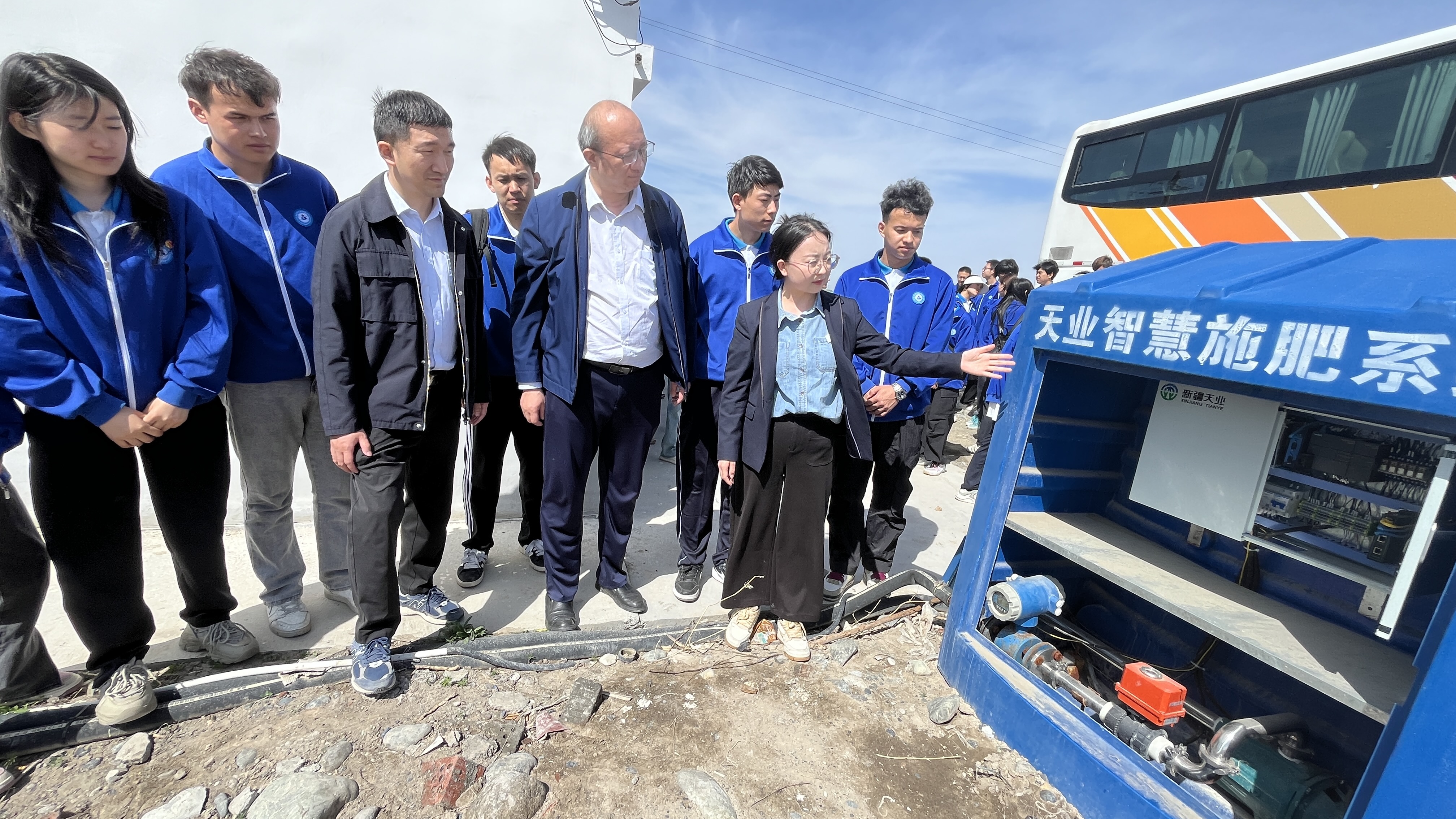 (张馨 报道)2025年4月15日上午,水利建筑工程学院联合新疆天业智慧农业股份有限公司,赴145团三分场三连开展“青春汗水浇灌智慧农田热血青年筑梦乡村振兴”为主题的现代农业技术专业乡村振兴实践教学活动。水利建筑工程学院党总支书记韩东、院长张婷、副院长刘春晓带领现代农业教研室全体教师及40名学生,与新疆天业智慧农业股份有限公司工程师杨庆、安装调试团队共同参与此次活动。