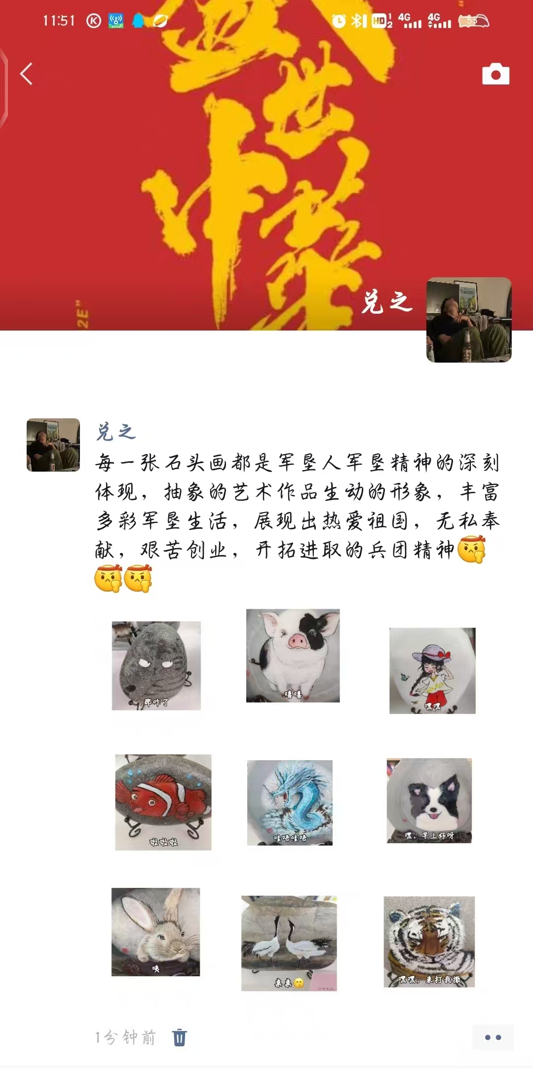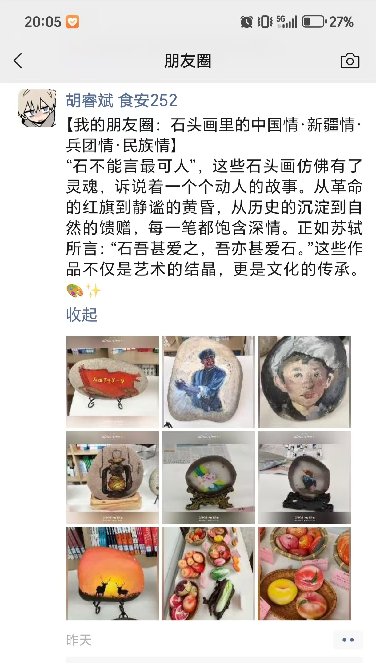 “这些石头画不仅是艺术创作,更是传承中华文化、赓续兵团精神的实践载体。”负责承办石头画展的创新创业学院负责人杨涵教授介绍,从采石、创作到梳理故事脉络,师生在过程中已与兵团精神产生深度共鸣,“这本身就是一堂生动的思政实践课”。