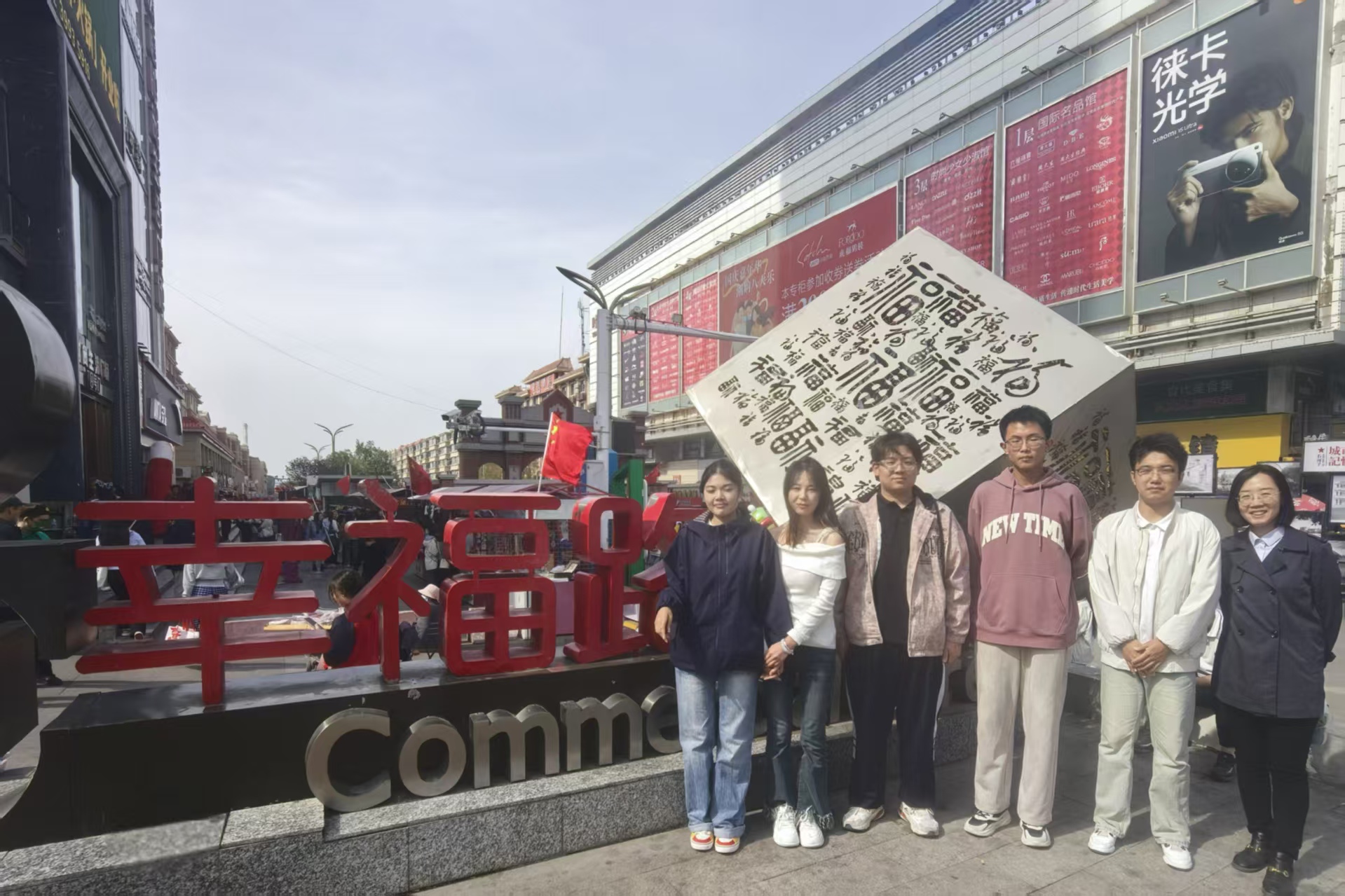 学子们在班主任的带领下,以小组为单位,带着“发现兵团之美”的任务清单开启幸福路打卡之旅。在幸福路步行街,同学们一边品尝凉皮、烤包子等本地特色美食,一边与商户交流经营变化,听店主讲述幸福路从“老商业街”到“文旅新地标”的转型故事;在红色文化展区,大家认真观看石河子建设初期的珍贵影像,深刻体会“戈壁明珠”从零到一的奋斗历程。2025级新生们纷纷用手机记录下街道两侧的新旧对比照片,和过去相比,如今这里多了文创店、科技体验区,既保留了老石河子的记忆,又充满了新活力,这就是祖国发展的生动缩影。