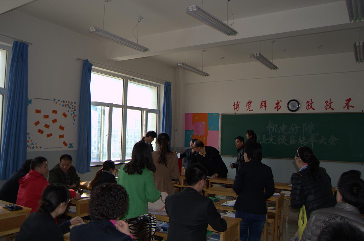 2015年3月4日,机械电气工程分院召开党员大会,进行党总支换届选举工作,会议由党总支书记胡英主持,胡书记首先客观全面地总结了分院上届党总支的工作,肯定了上届党总支近年来作出的成绩,同时也指出了工作中的不足,明确了今后的努力方向。