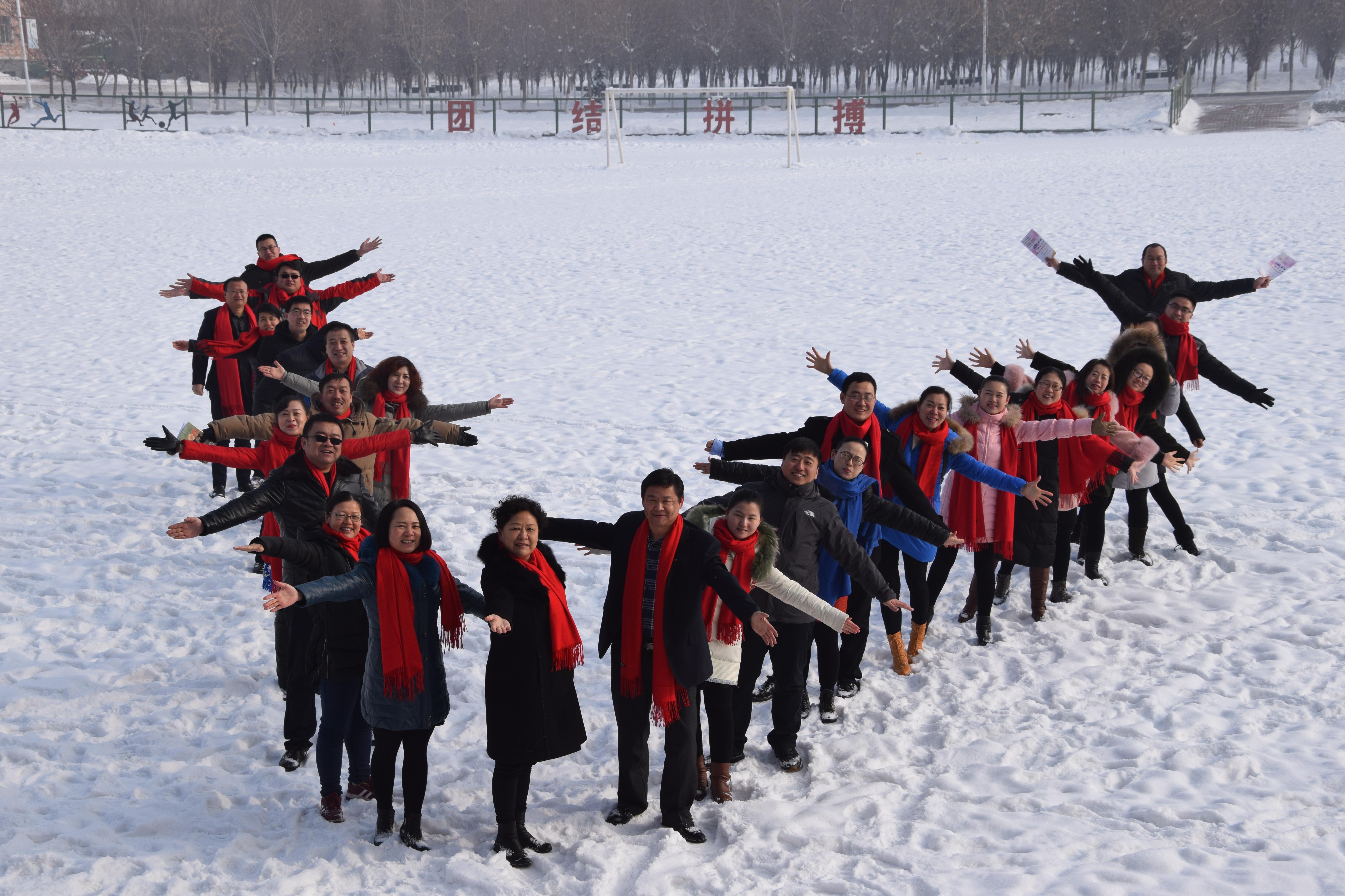 会后,管院、分院领导与全体参会人员在银装素裹的田径场合影留念,管院站在队伍的最前端,大家“V”字形分列两旁。灿烂的笑脸、大红的围巾在一片素白中分外耀眼,映衬出大家开拓进取、敢为人先的壮志豪情!