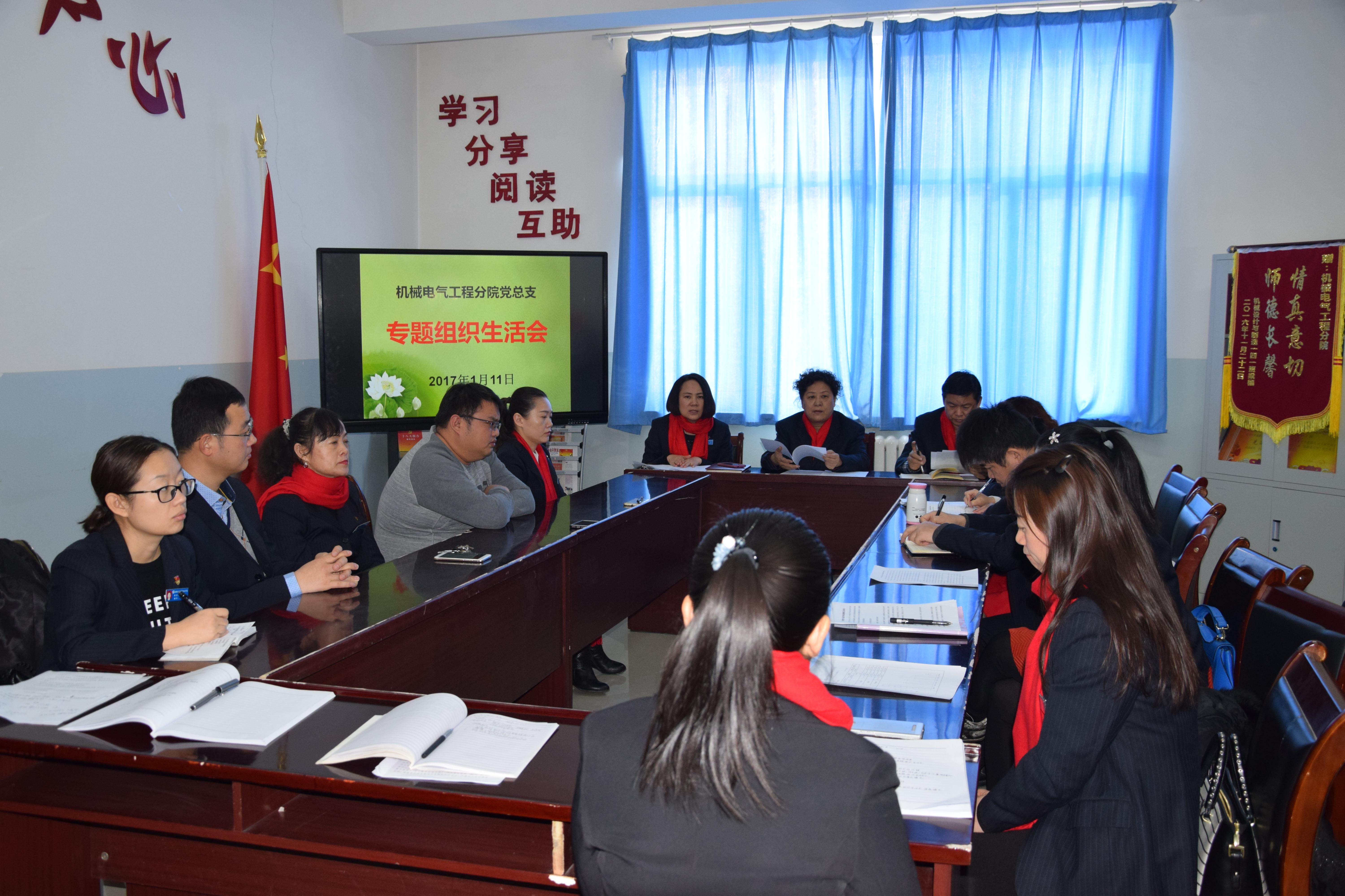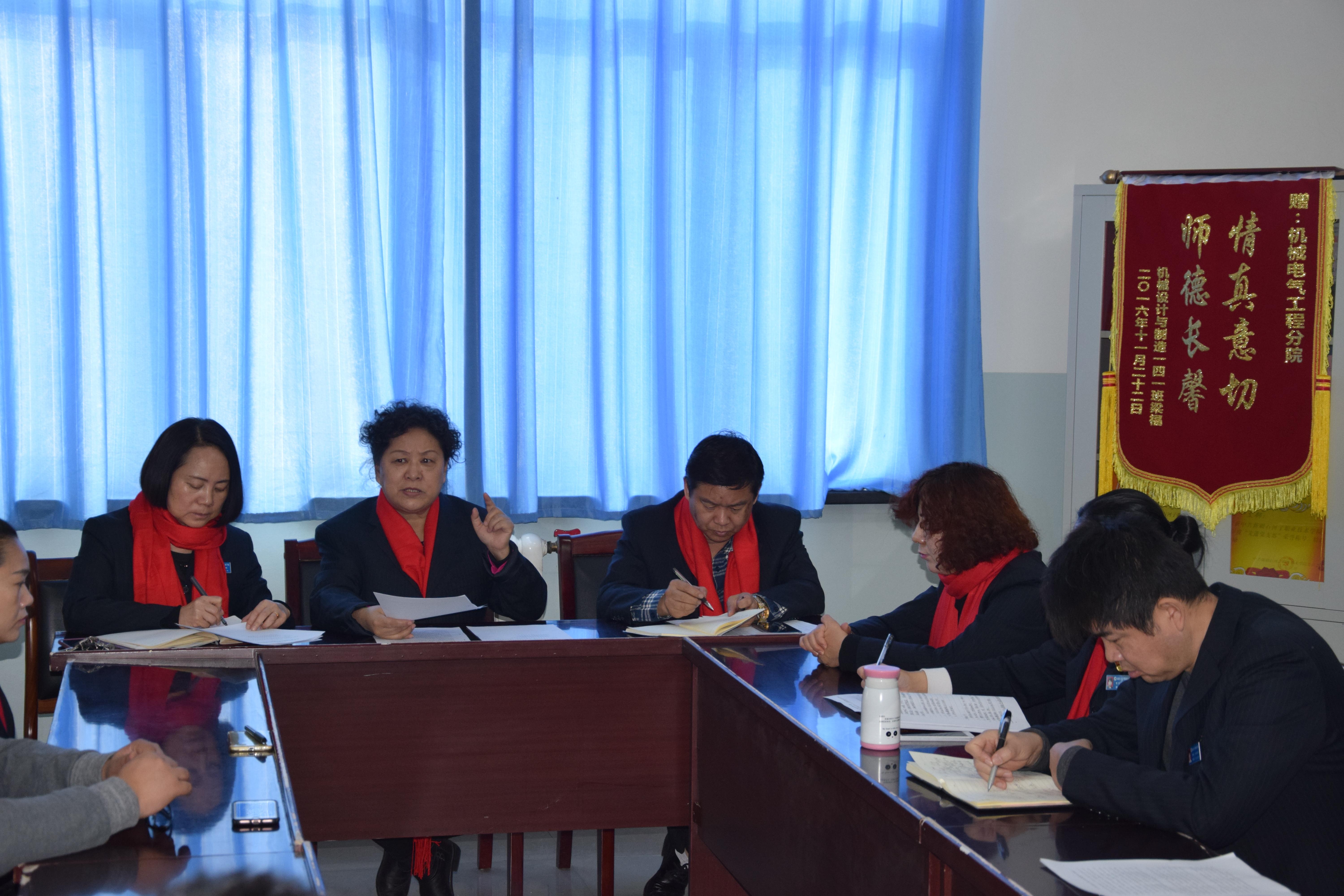 1月11日上午,机电分院党总支召开班子专题民主生活会,会议由胡英书记主持。学院管和疆副院长到会指导,并和党员们互动交流、合影留念。