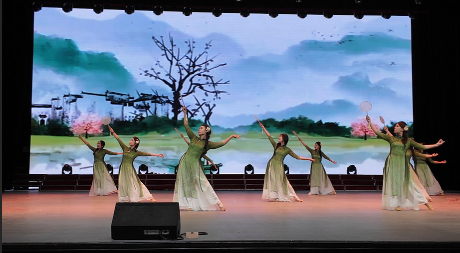 节目《燃动节拍 未来由我定义》《我是兵团筑梦人》以充满活力的表演形式,将青春风采与兵团精神巧妙融合,展现了新时代青年的责任与担当;《青春铸魂 爱国同行》等节目则通过朗诵、歌舞等多种艺术形式,深情诠释了家国情怀与时代使命;《不染》以国风美学结合现代舞台创意,舞姿翩跹,意境悠远,赢得阵阵掌声,充分彰显了中华优秀传统文化的独特魅力;《石榴红了》以富有感染力的表演传递了民族团结、携手奋进的精神力量。全体新生班主任与新生代表共同唱响《我的未来不是梦》将晚会推向高潮,真挚的歌声中饱含对未来的憧憬与信念。本次晚会还通过学院开发的专属小程序开展了两轮互动抽奖,让新生在轻松愉悦的氛围中感受到学院的关怀与数字技术的便捷,进一步增强了新生的归属感和参与感。