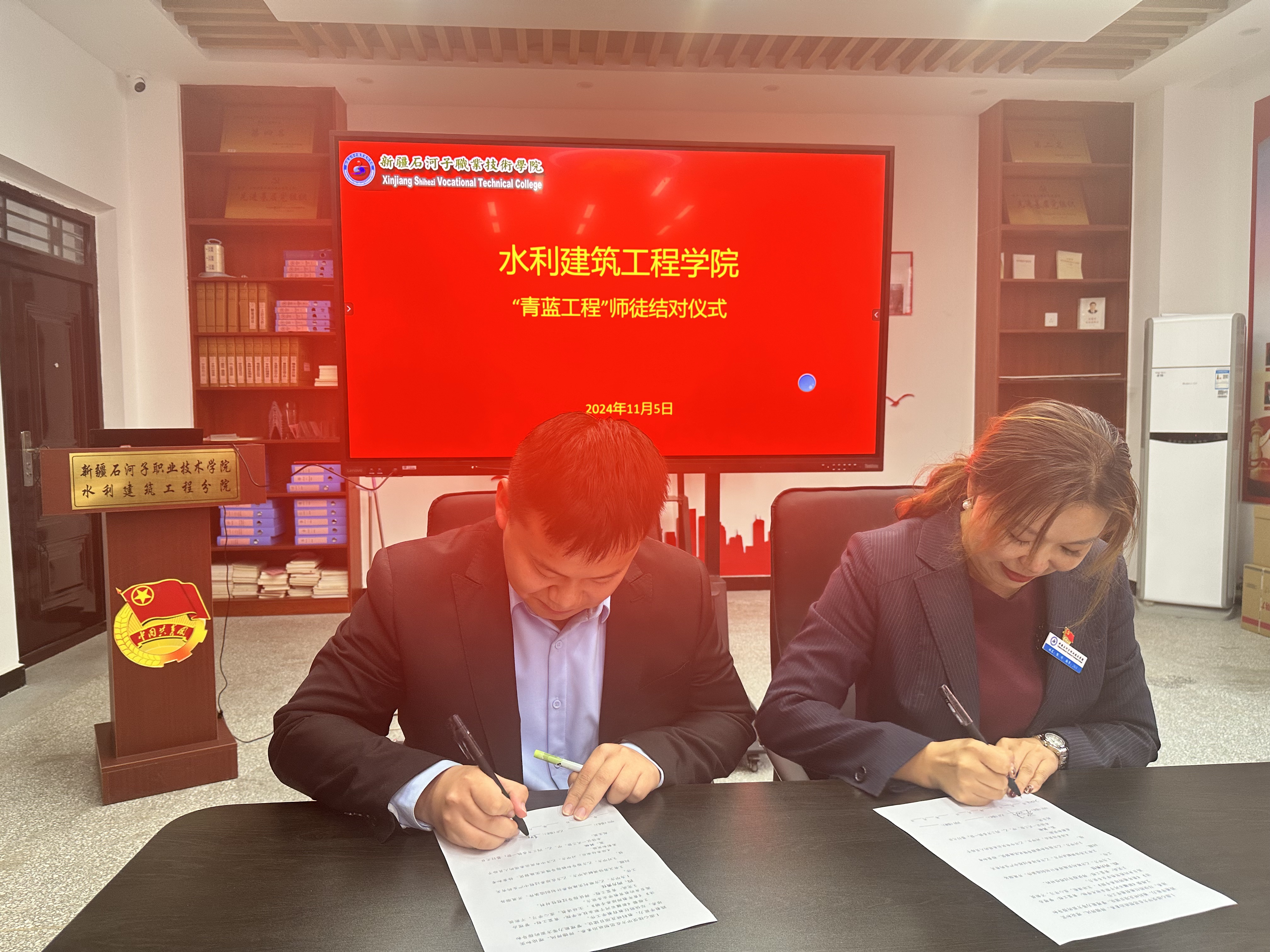 (周俞彤 方然)为深入贯彻国家关于加强教师队伍建设的方针政策,促进青年教师快速成长,水利建筑工程学院于2024年11月5日下午在通智楼B104会议室举行“青蓝工程”师徒结对仪式。
