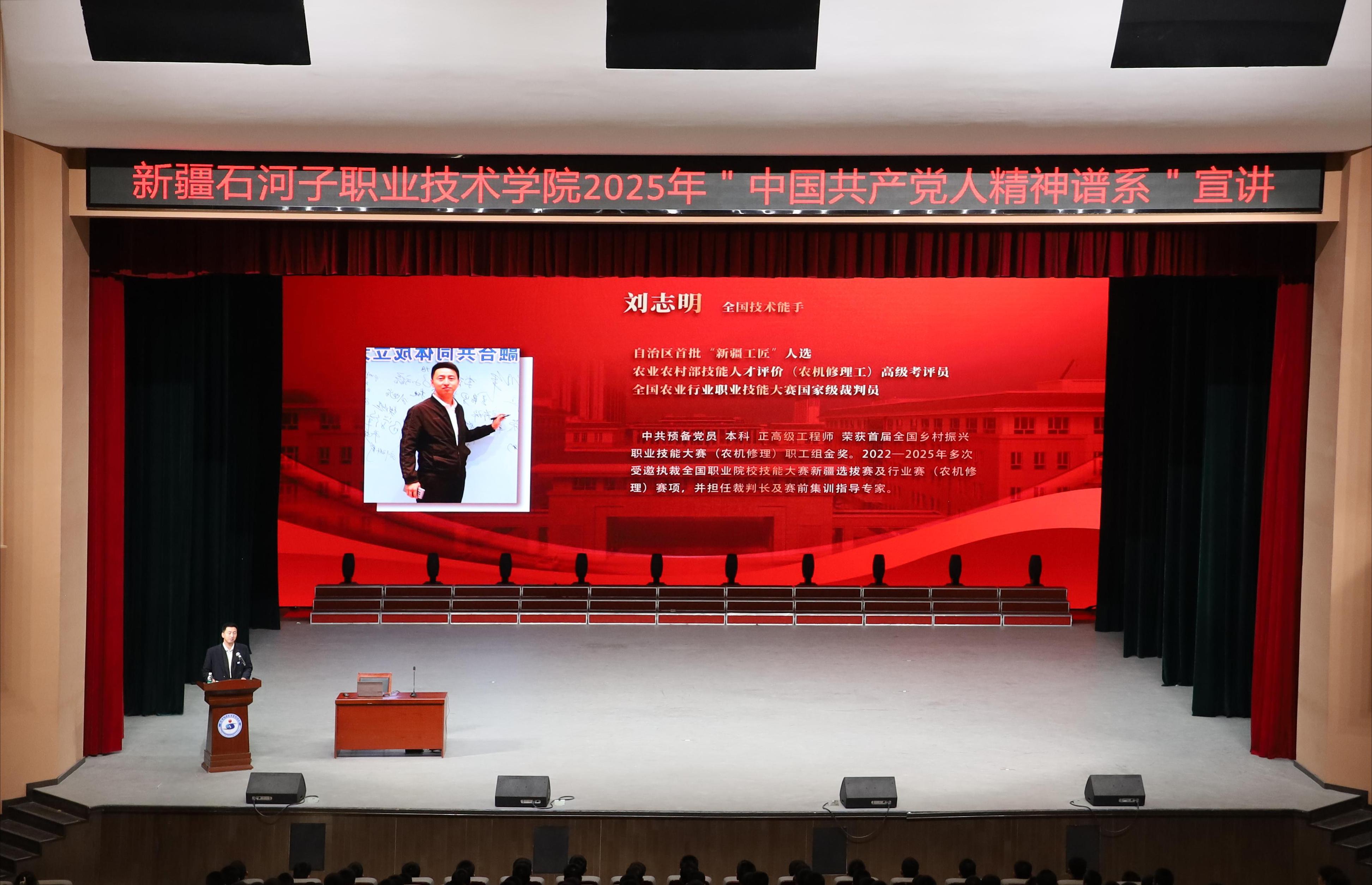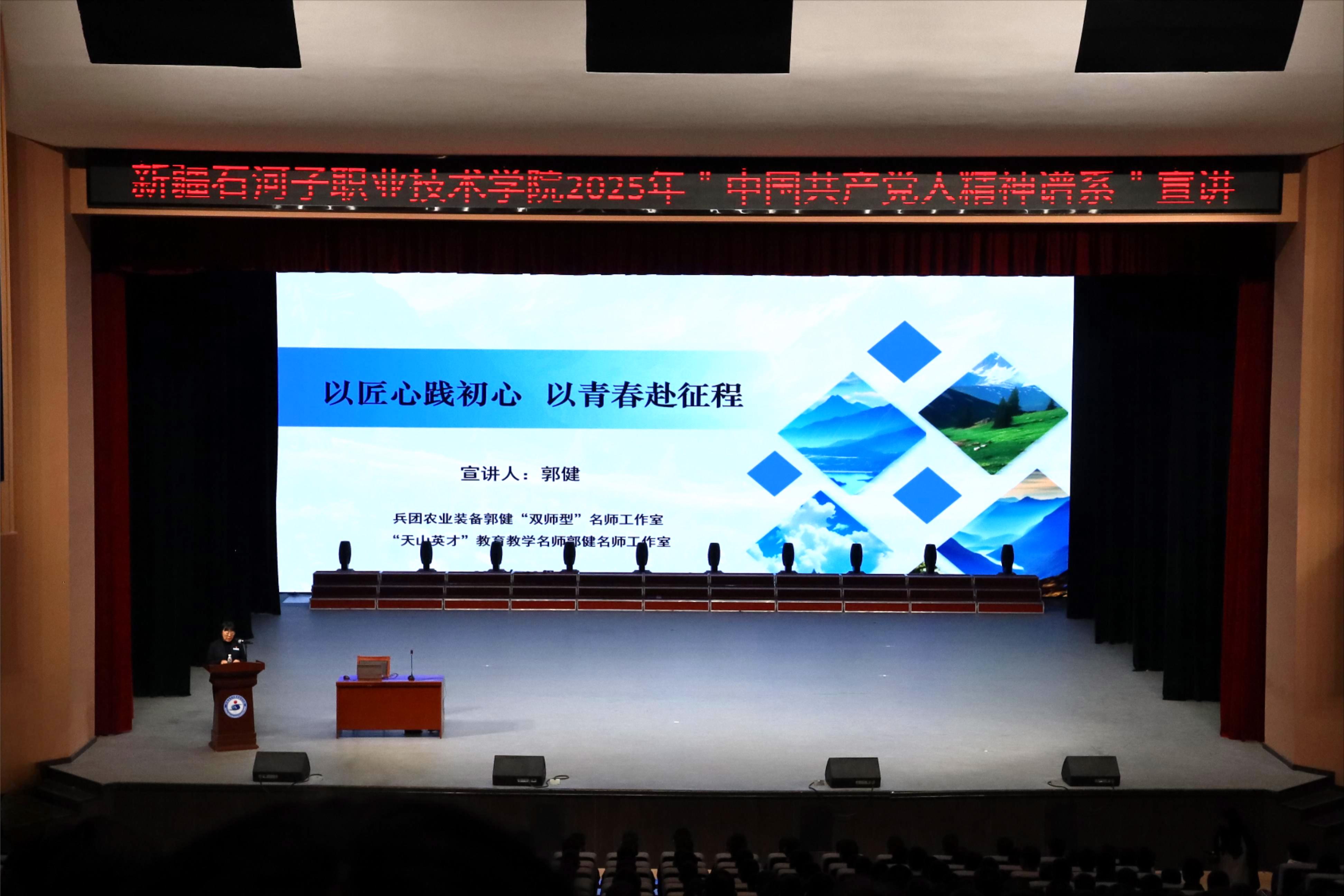 为深入学习贯彻党的二十届四中全会精神,落实全国高校“立报国强国大志向 做挺膺担当奋斗者”宣传教育要求,传承兵团红色基因,培育师生“扎根兵团、服务边疆”的职业情怀。2025年12月4日下午,新疆石河子职业技术学院“中国共产党人精神谱系”校内宣讲活动在学术报告厅开讲。学校党委书记史文革,党委副书记、院长林炯,副院长马彩梅及相关部门负责人、二级学院领导,1000余名师生代表齐聚一堂,共同接受这场精神的洗礼与思想的淬炼。