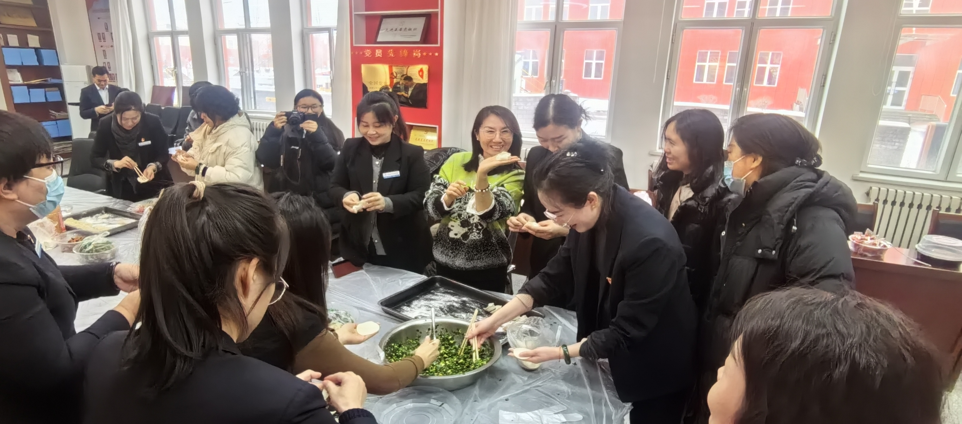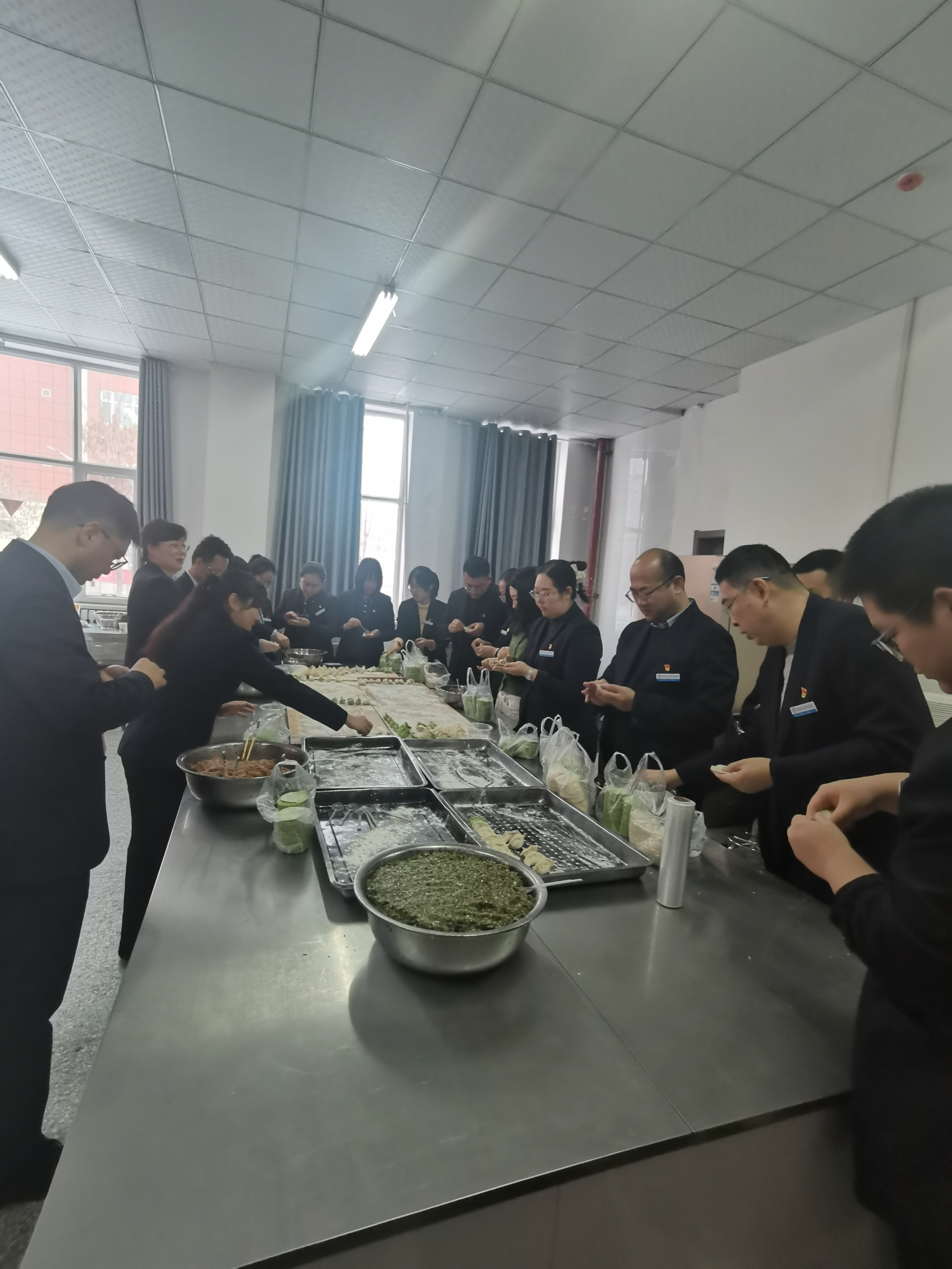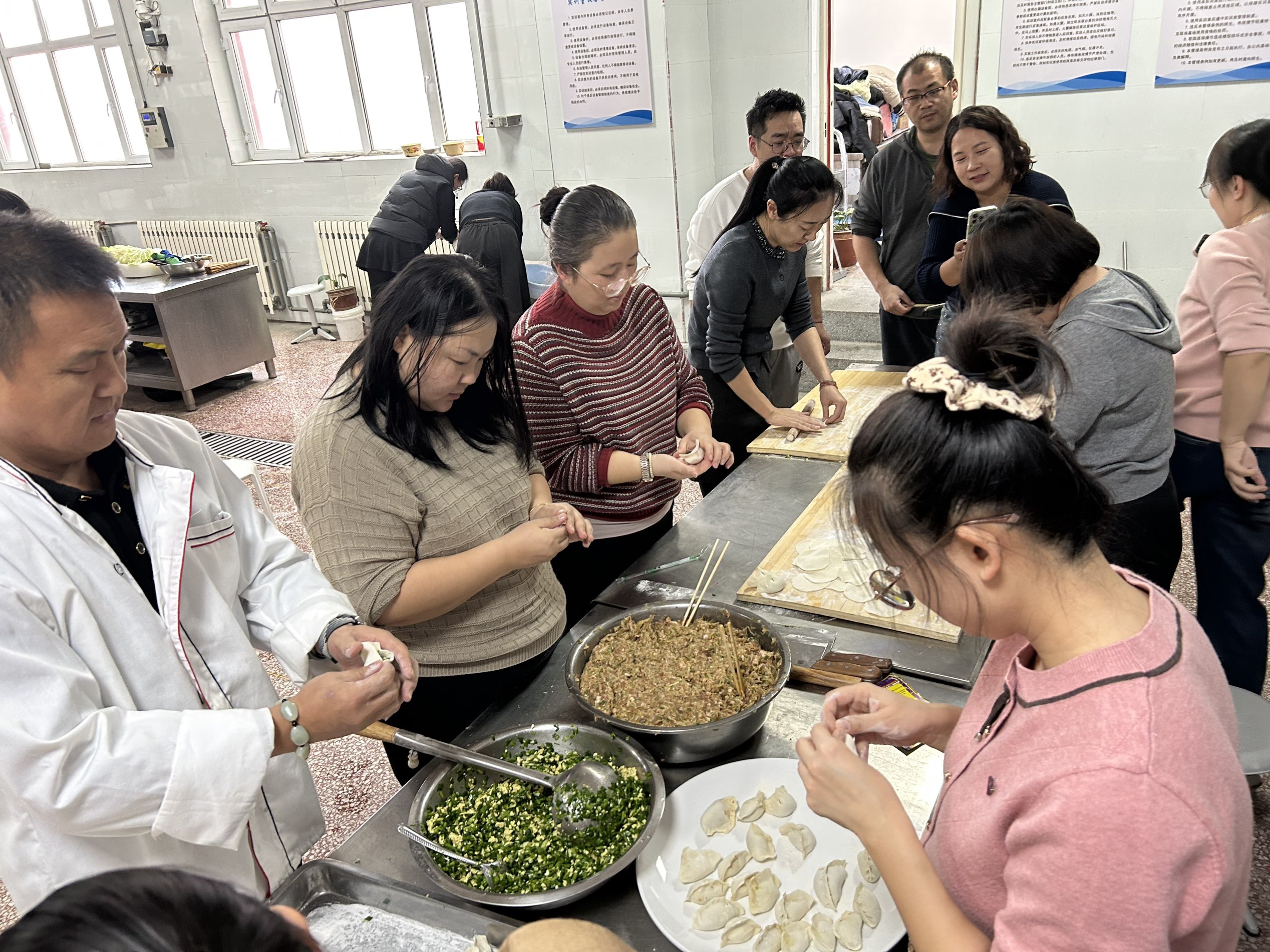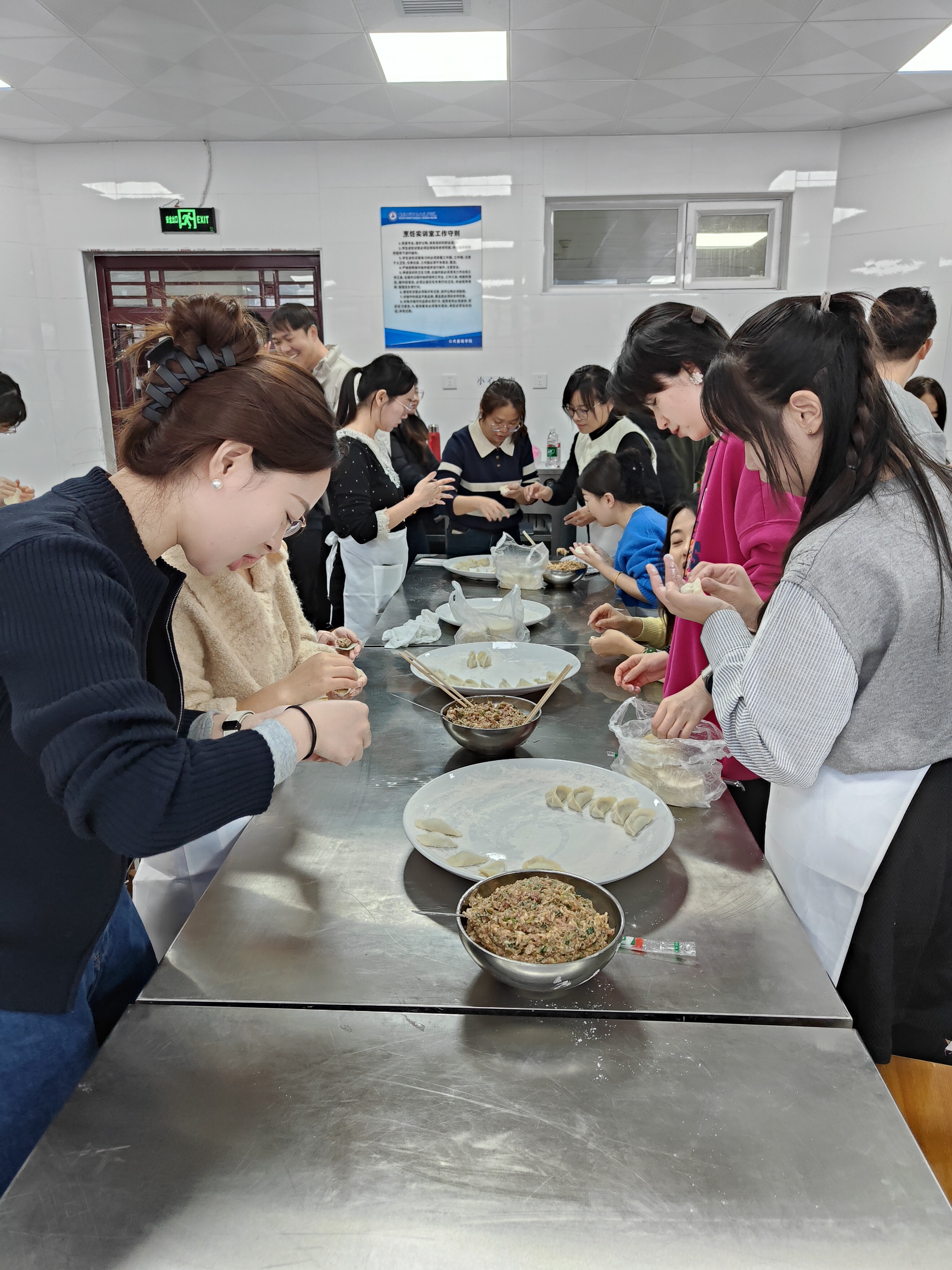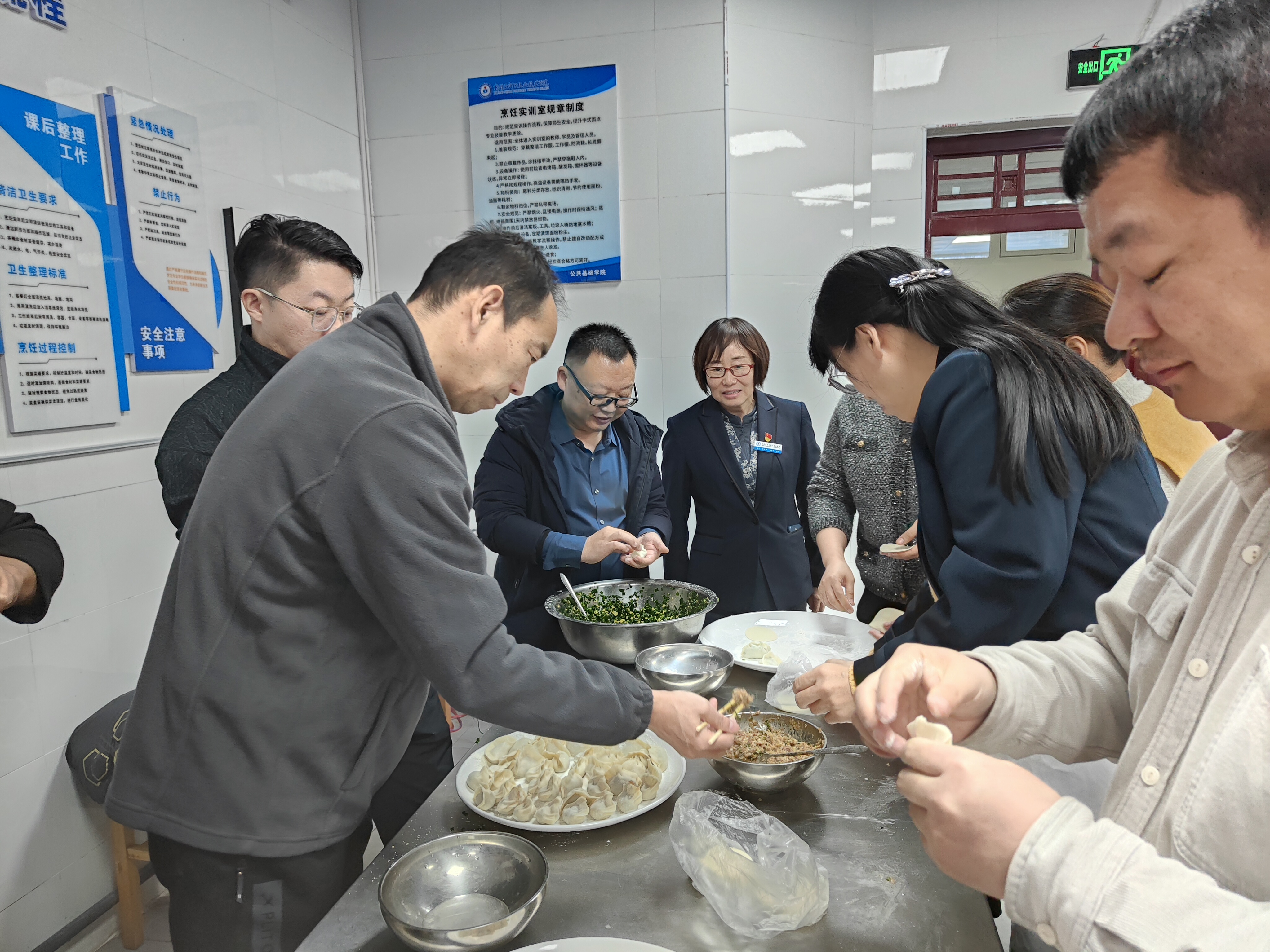 学院各党支部党建会议室、教职工食堂、专业实训室等处,处处洋溢着温馨热闹的氛围。在各工会小组的精心组织下,教职工们分工协作、默契配合,揉面、擀皮、包馅等工序有条不紊,现场欢声笑语不断。党员教师积极发挥先锋模范作用,主动承担活动协调、物资准备等工作,在劳动间隙与群众教师深入交流思想、探讨育人工作,进一步拉近了党群距离、凝聚了奋进合力。各工会小组巧思融入党建元素,让活动既有“烟火气”更有“红色味”:有的小组开展了党的创新理论微宣讲;有的则结合专业特色,将饺子包成象征“同心圆”“团结籽”等造型,以具象化的形式表达团结一心、深耕育人的共同愿景。热气腾腾的饺子不仅驱散了严寒,更凝聚了人心。一位参与活动的青年教师表示:“和同事们一起动手包饺子、话家常,感受到了浓浓的归属感。饺子吃起来格外香,心里也特别暖。”