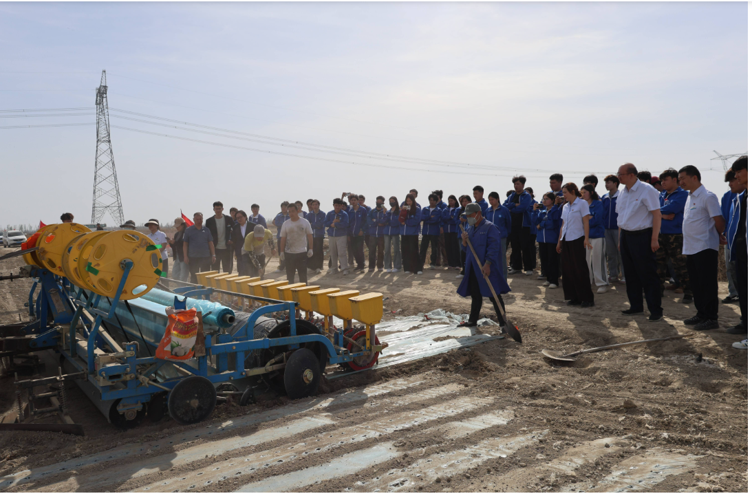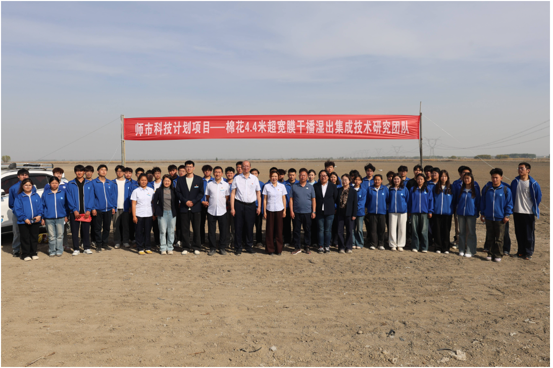 (张馨 报道)为助力地方棉花产业提质增效、棉农增收,促进政校合作,2026年4月15日下午,水利建筑工程学院党总支书记韩东、院长张婷,带领现农教研室全体教师及现代农业专业学生,前往沙湾市商户地乡,参加棉花4.4米超宽膜干播湿出技术现场观摩交流会。