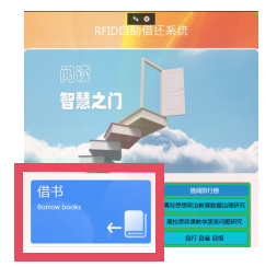 1.读者到书架取心仪的书籍,将图书拿至自助借还书机,选择借书界面。