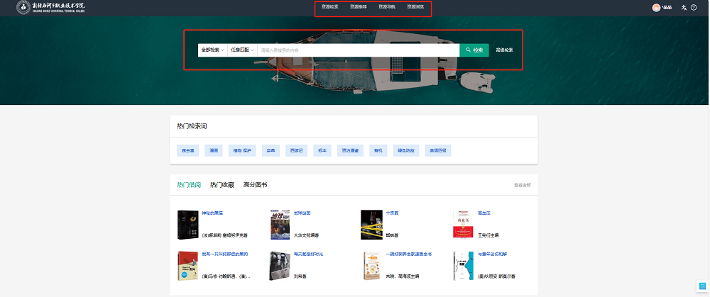 4.系统首页可以对资源进行检索、推荐、浏览等。