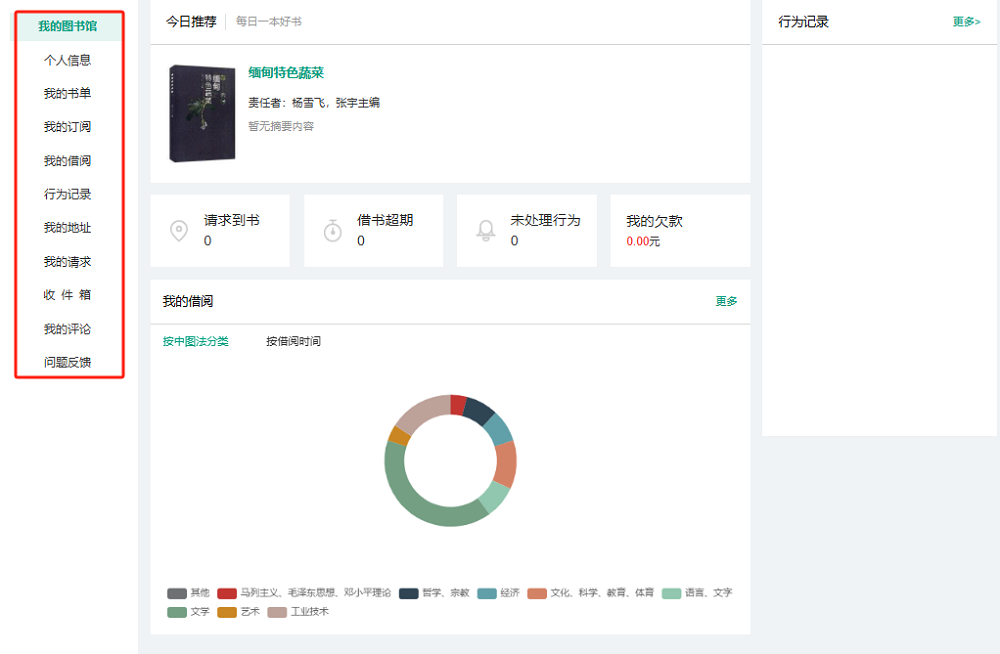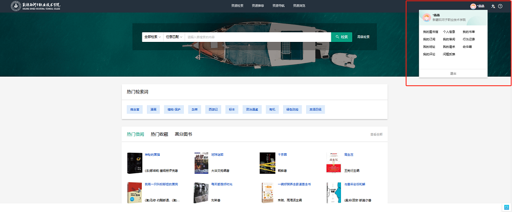2.读者选择右上角个人姓名,点击后即可进入“我的图书馆”