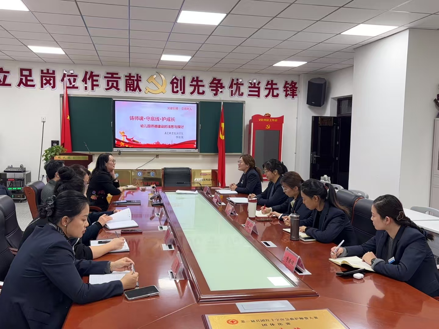 (李婵报道) 为以党建赋能师德建设,落实立德树人根本任务,2025 年 11 月 28 日,大连职业技术学院与我院现代服务学院学前教育专业联合举办 “铸师魂・守底线・护成长 —— 幼儿园师德建设的浅思与探讨”支部共建教研活动,两地院校专家、教师代表齐聚,共探学前教育师德建设新路径。