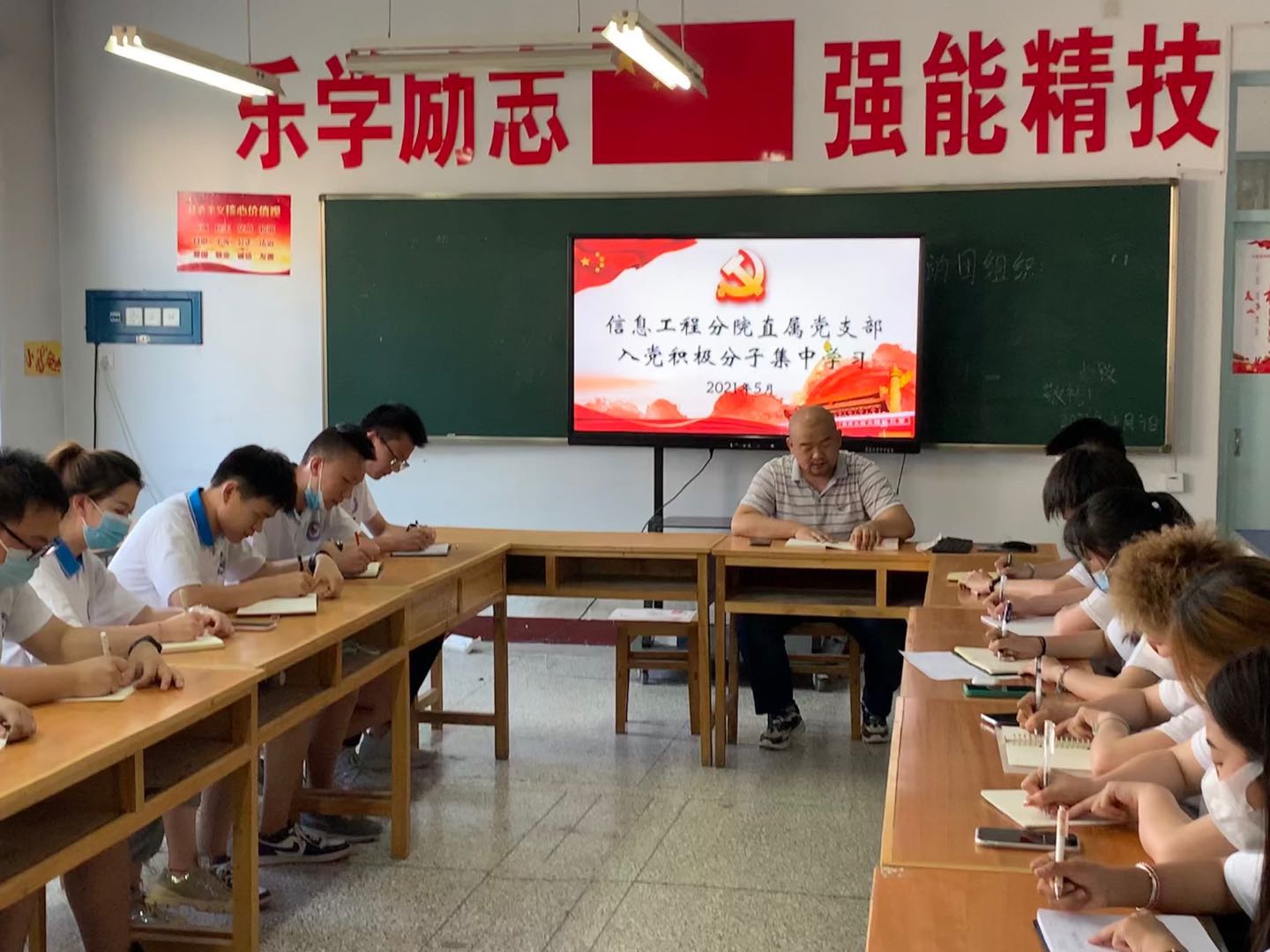 为坚持做好学生党员培养,狠抓分院党团建设,进一步贯彻学“四史”主题教育学习。信息工程分院于5月26日下午7点,在信息楼303室组织2020年度入党积极分子第五次暨2021年度入党积极分子第一次集中学习。学习活动由分院副院长周鑫主持,主要对《中国共产党简史》、《毛泽东、邓小平、江泽民、胡锦涛关于中国共产党历史论述摘编》进行了选读,介绍了党的基本知识和党的历史主线。