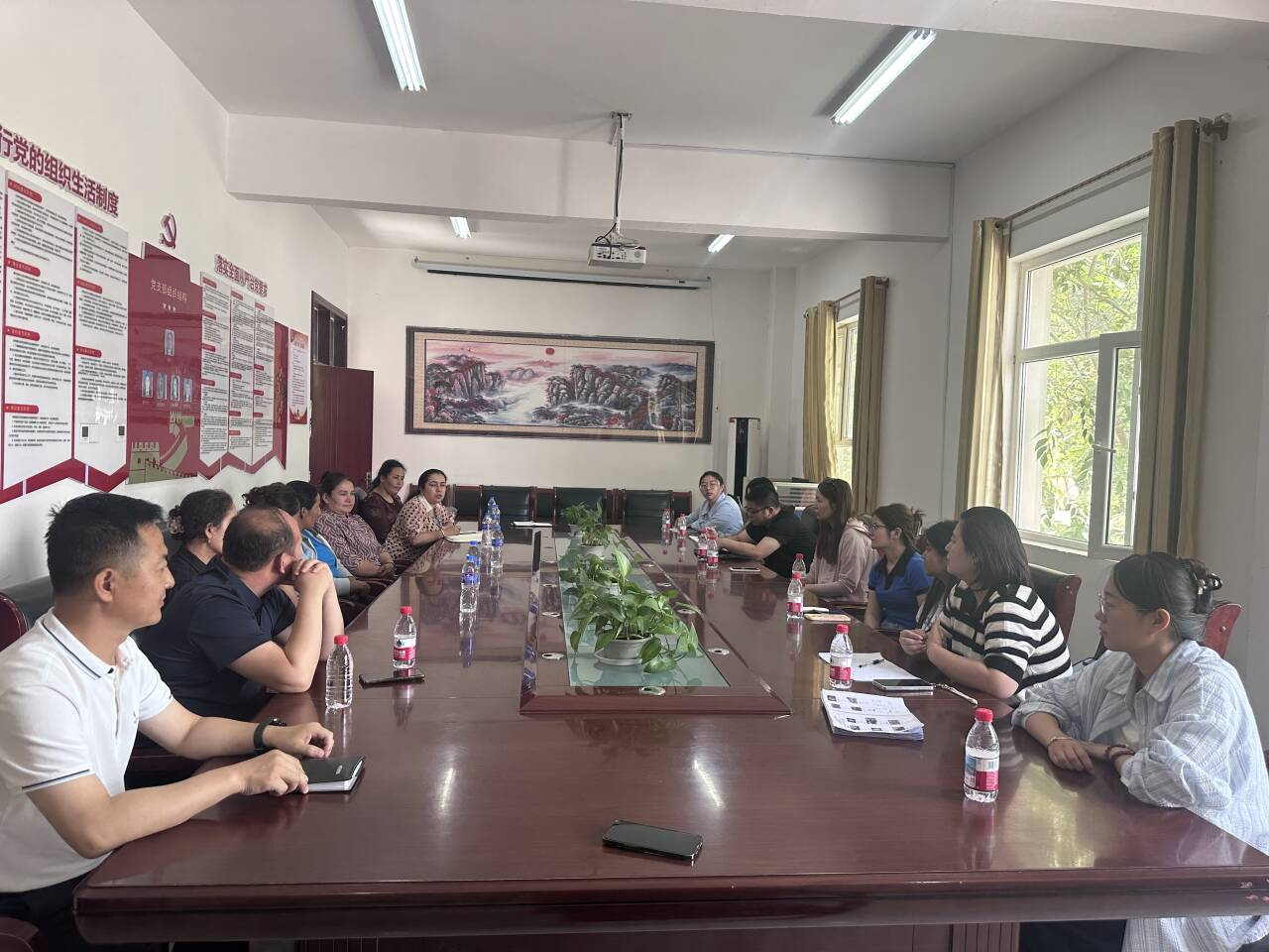 两位教师与皮山农场的干部、培训教师、居民代表举行了座谈会。座谈会上,双方就国通语学习的重要性和当前面临的挑战进行了深入交流。两位老师分享了丰富的教学经验和学习方法,为皮山农场的国通语推广工作提供了宝贵的建议。同时,皮山农场的干部和居民也积极发言,表达了对提升国通语能力的强烈愿望,并希望今后能有更多类似的帮扶活动。除了座谈会,两位老师还协助皮山农场开展了国通语水平测评工作。他们为不同年龄段和职业背景的居民提供测评服务。