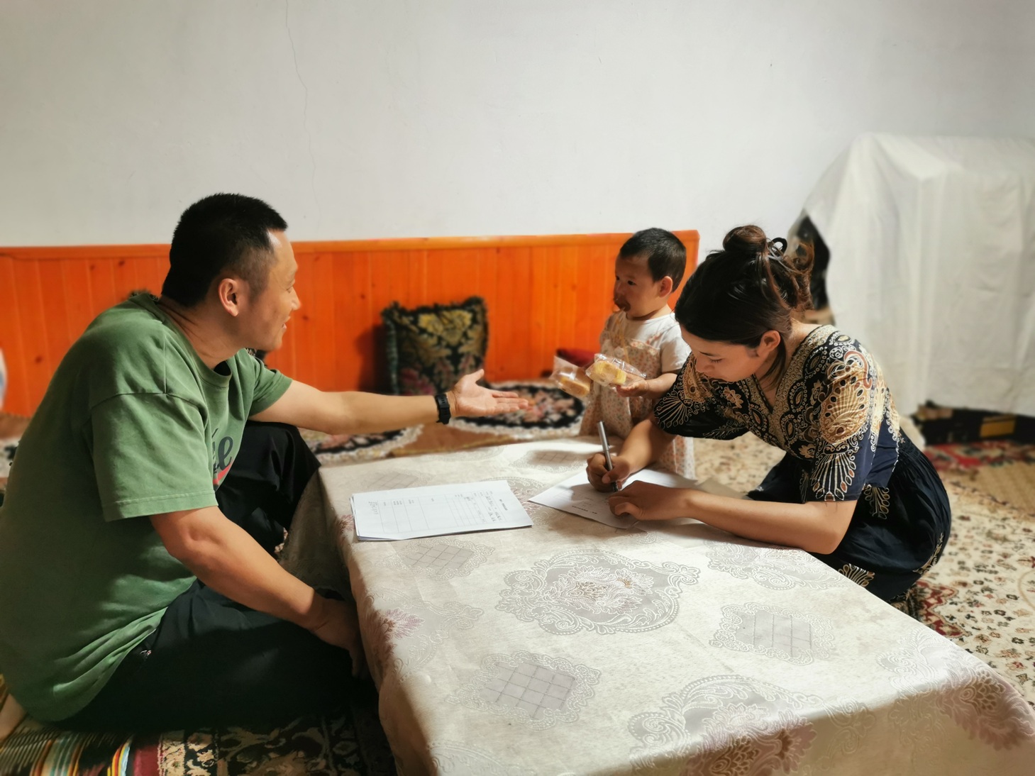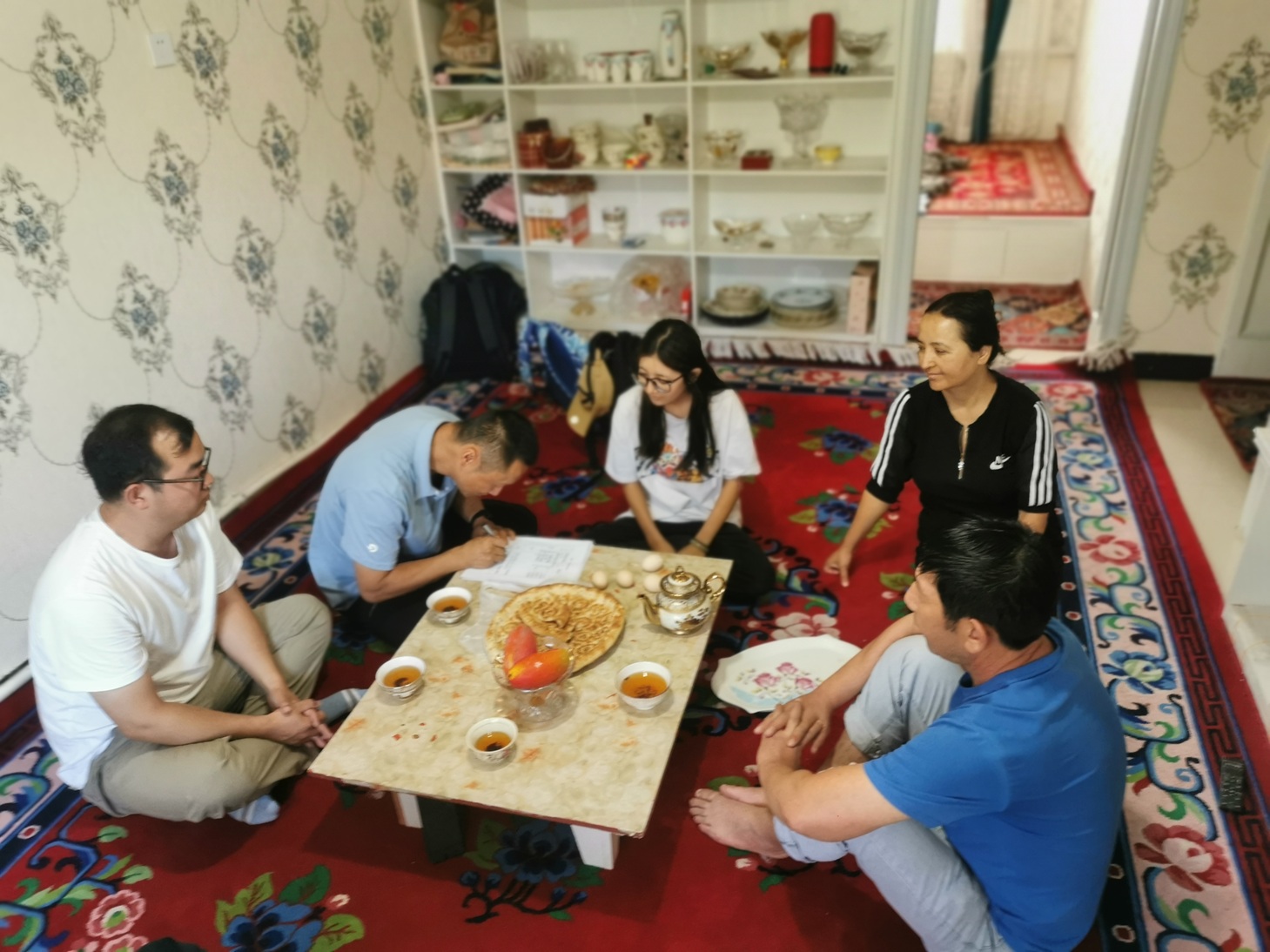 7月14日,乌鲁木齐的高温挡不住家访的脚步。刘睿、王大宁两位老师来到哈萨克族学生阿衣古丽・艾合买提家中,这位姑娘正利用暑假在餐厅做兼职,忙碌间隙见到老师,又惊又喜。阿衣古丽家庭收入不高,家长特意从家里赶来,与老师展开畅谈:“孩子懂事,知道帮家里减轻负担,但我们更希望不要影响学业。”谈及家庭情况时,家长略显局促地提到了助学金申请政策。刘睿老师当即拿出宣传册,逐条解释:“学校对少数民族学生和困难家庭学生有专项帮扶,绝不会让任何一个孩子因家庭困难失学,您放心,我们会指导孩子准备材料。”