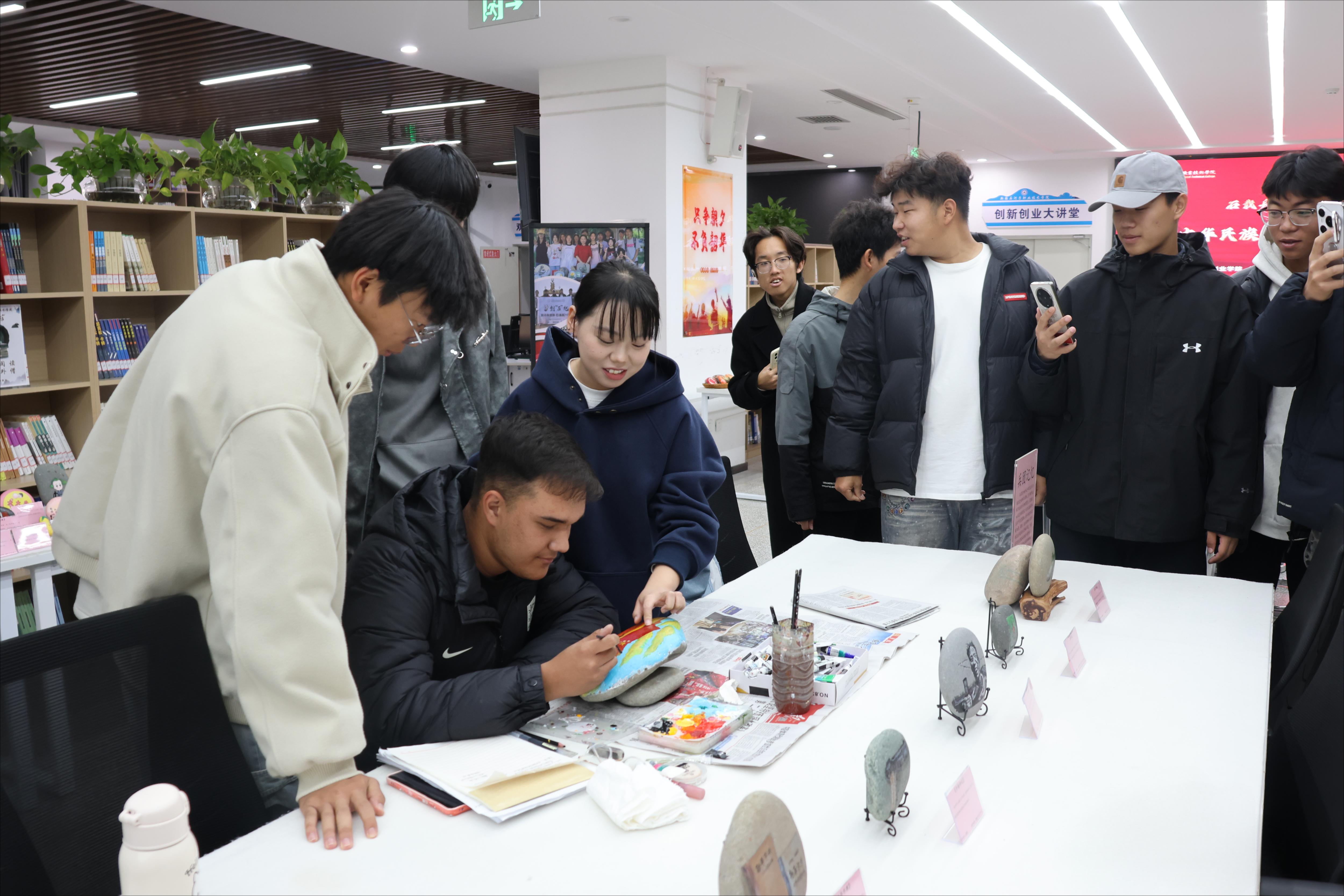 建设管理251班学生王佳意说:“今天看着石头画里的故事,听着背后的历史,更加明白了‘兵团精神'是前辈用双手干出的实绩。”同班许璟涛则提到,尝试创新创作石头画后,对“民族团结”时代担当的理解更具体了。马克思主义学院党支部书记、院长张敏表示:“将课堂搬进展览,是思政课改革的重要探索。传统课堂易产生距离感,而石头画为载体的沉浸式教学,让学生‘走进故事里',通过视觉、听觉、触觉多重体验,真正实现‘真学、真懂、真信、真用'。”