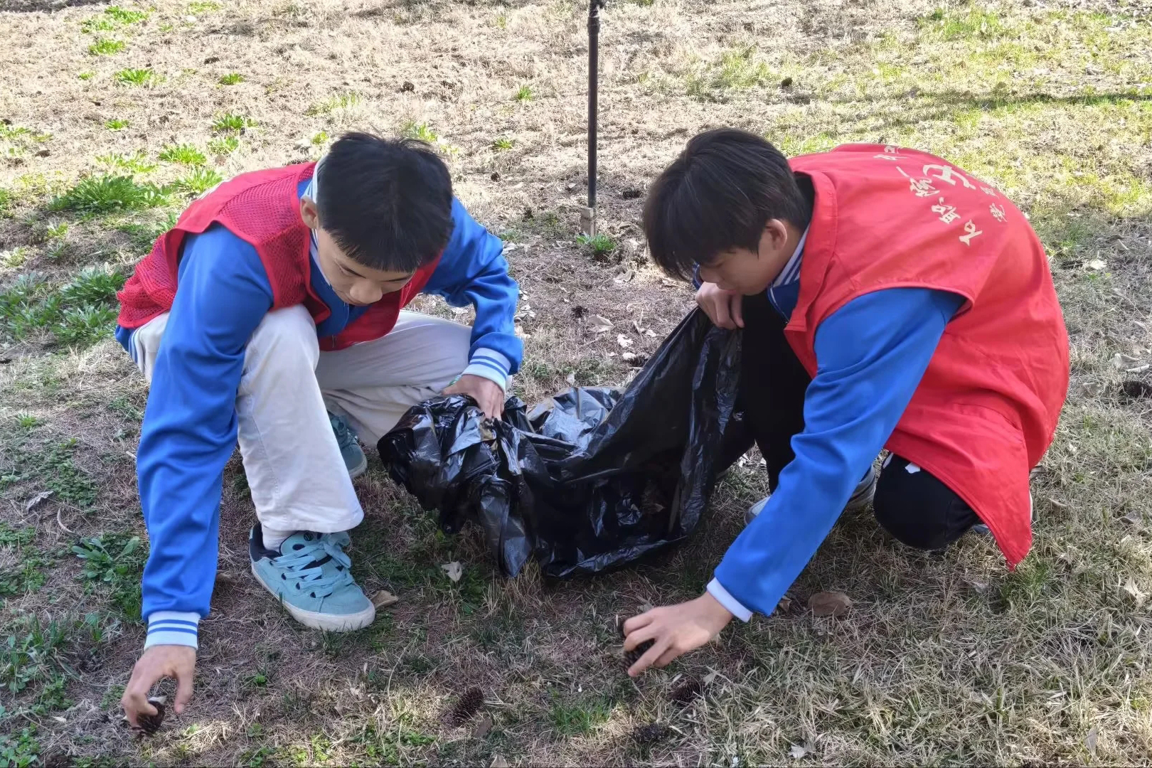 怀着对伟人的深切哀思,志愿者们有序开展纪念碑周边院落卫生清扫志愿服务。大家分工明确、配合默契,有的弯腰捡拾落叶杂物,有的细心擦拭纪念碑周边的公共设施,有的规整院落内的绿植与宣传展板,不放过任何一个卫生死角,以质朴务实的实践行动,寄托对周总理的缅怀与崇敬之情。