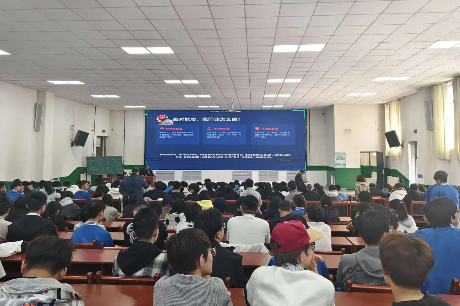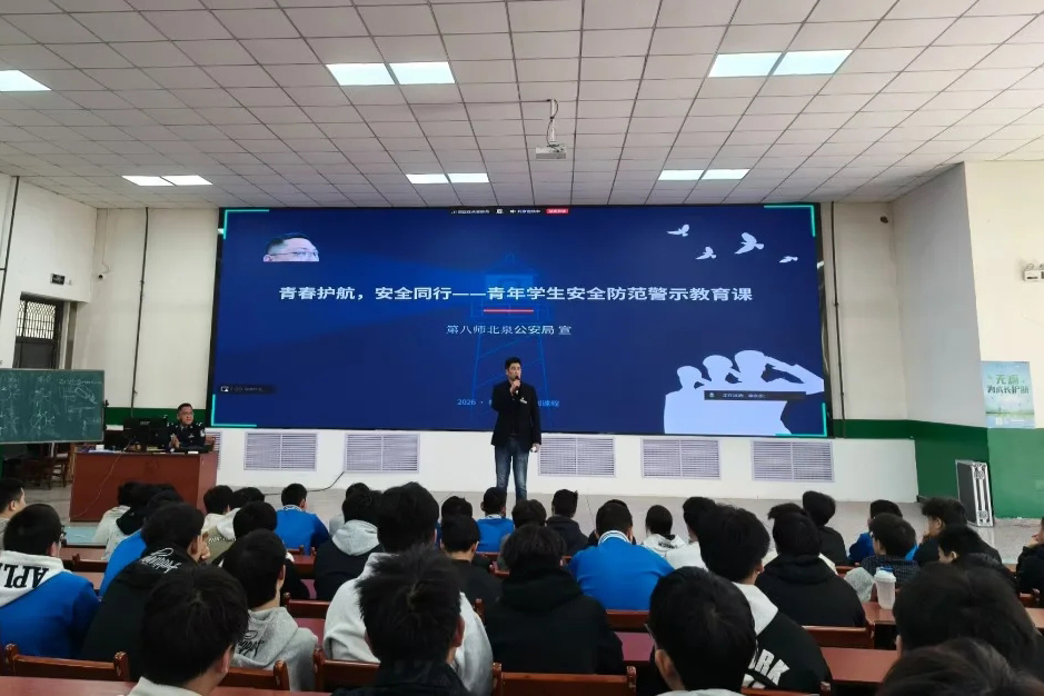 (李思思报道)为切实增强学生安全防范意识和法治观念,筑牢校园安全防线,引导青年学生树立正确的安全观和法治观,公共基础学院于3月26日在东、西阶梯教室,面向24级、25级全体学生开展“青年学生安全防范警示教育课”,特别邀请北泉公安局治安大队炳潇大队长作为主讲人,为同学们的健康成长保驾护航。